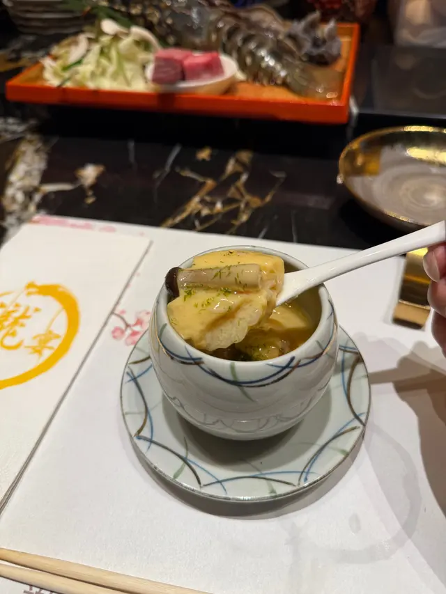 特别要提一下 泷宴特色散寿司,满满的三文鱼籽和各式角切鱼生铺在饭上,一勺下去,鱼籽在口中爆开,混合着醋饭和鱼生的香,非常过瘾。中间的 海鲜茶碗蒸 蛋滑嫩无比,暖胃又鲜甜。