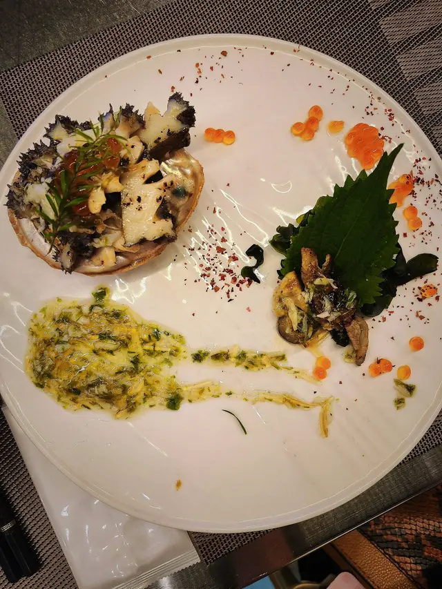 〰️ 原隻活鮑魚:鮑魚🦪好大隻,呢個唔單止邊位肉質軟腍,配蟹肉海苔芡汁好驚喜。