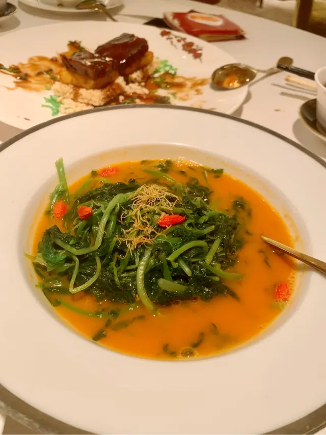 1. 新鮮天麻涼拌南非鮮鮑片Chilled South African Abalone with Fresh GastrodiaA refreshing starter with prized South African abalone, but the gastrodia pairing feels more medicinal than culinary. While texturally interesting, the flavor synergy could be more refined.2. 果木火豚叉燒Fruitwood-Smoked Iberico Char SiuThe fruitwood-smoked char siu offers a pleasant aroma and tender bite. However, the sweetness and glaze depth may lack the layered complexity found in benchmark versions from top-tier Cantonese kitchens.3. 家鄉拆魚羮Shredded Fish Broth in Homestyle StyleComforting and nostalgic, this fish broth evokes home-style warmth. Yet, the execution leans rustic — missing the finesse or clarity expected at Michelin level.4. 石解靈芝燉水鴨湯Double-Boiled Duck Soup with Ganoderma and Stone LotusA health-forward soup with premium lingzhi and duck, but the broth’s balance between herbal bitterness and umami could be more harmonized. It reads more therapeutic than indulgent.5. 砂鋦三杯焗海火鱔Claypot-Baked Sea Eel with Three-Cup SauceA bold attempt at Taiwanese “three-cup” style with sea eel. While the caramelized glaze is appealing, the eel’s richness may overpower without a counterpoint of acidity or freshness.6. 雞油花鵰奄仔蟹蒸秋茄Steamed Eggplant with Baby Crab, Chicken Oil & Huadiao WineTechnically ambitious — combining chicken oil, huadiao wine, and baby crab over eggplant. The result is aromatic, but the textures compete rather than complement. A more restrained hand might elevate the elegance.7. 茶香煙黑妙齡鴿Tea-Smoked Young Pigeon with Charcoal HueTea-smoked pigeon is a classic, and this version is visually striking. However, the smokiness and seasoning could be more nuanced to highlight the bird’s natural flavor rather than mask it.8. 上湯焗西澳洲龍蝦Baked Western Australian Lobster in Supreme BrothLobster baked in superior broth sounds luxurious, but the dish risks being heavy. The broth’s salinity and the lobster’s sweetness need tighter calibration to avoid muddling.9. 濃湯魚肚四寶湯Rich Fish Maw Soup with Four TreasuresA rich soup featuring fish maw and four treasures — undeniably premium ingredients. Yet, the broth’s density may overshadow the delicacy of each component. Separation of flavors would enhance clarity.10. 蝦籽柚皮Braised Pomelo Peel with Shrimp RoeA traditional pairing with dried shrimp roe and pomelo skin. While nostalgic, the bitterness of the pomelo skin needs precise control to avoid dominating the palate.…Read More