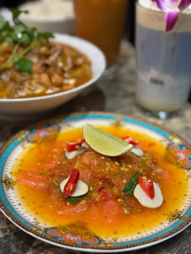 [ #旺角美食 #caloriefoodie旺角 ]• 青 花 •🐿 -呢間餐廳同其他泰國菜唔同嘅係⋯⋯呢度菜式賣相特別打卡📸感覺上係新派泰菜😳🇹🇭推薦馬沙文番料牛肉咖喱 超足料✨配上蒜蓉包、牛油酥餅定普通白飯都好好食🥹-🐟 泰式涼拌三文魚 💰$128泰式生蝦就食得多 泰式三文魚就第一次試 酸辣醬汁配上頗為厚身嘅三文魚 開胃之餘 食落又幾有口感 酸味偏多-🥘 馬沙文番料牛肉咖喱+白飯 💰$128 + 15基本上每次食泰式餐廳 都會叫馬沙文咖喱😳呢款咖哩有獨有嘅香氣味道 撈汁一流除咗牛肉以外 仲有茄子、秋葵等蔬菜 超足料-🍍 藍蝶花蟹肉菠蘿炒飯 💰$138非一般嘅菠蘿炒飯 藍色嘅炒飯簡直係視覺衝擊 有聽過藍色係令人減低食慾嘅顏色😹好彩無事!!而事實上加咗藍蝶花嘅飯粒都無特別味蟹肉份量都唔少 撈埋肉鬆同菠蘿粒粒幾有口感-🍹 蝶豆花椰子奶蓋 💰$48奶蓋配上蝶豆花椰奶 賣相就好似藍天白雲 靚!!-🧋 泰國奶茶 💰$38普通版泰式奶茶✨另外仲有加咗奶蓋同珍珠版本-📍旺角奶路臣街17號THE FOREST 1樓107-108號舖-#caloriefoodie…Read More