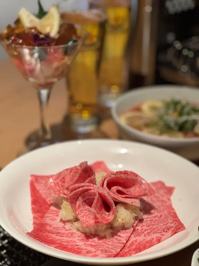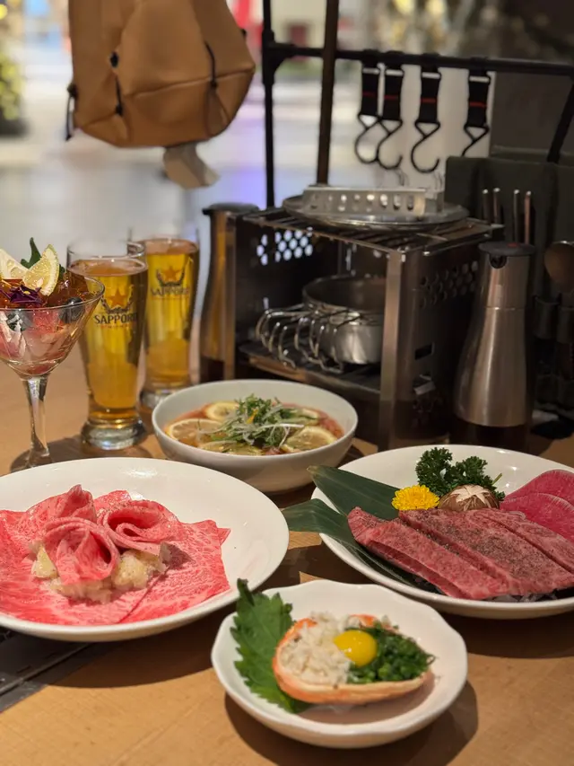 餐廳主打日本宮崎A5和牛🐮口感十分軟腍基本上諗唔到叫咩 都一定要叫A5和牛系列‼️陣油脂感真係唔講得笑 食得好滿足🥹捉埋啲唔去露營嘅朋友去感受露營𝐯𝐢𝐛𝐞✨-🐮二人精選和牛套餐 💰$498/1個人套餐包前菜、三款肉類、甲羅燒、兩款主食最後仲包埋兩款飲品 可以揀含酒精🍸-🍸 熱帶風情海鮮雞尾酒杯開胃小菜 酸甜啫喱 配上新鮮魚生 有北寄貝、帶子、吞拿魚等等作為前菜嘅開胃 亦可以食燒肉期間解膩-🥩 A5和牛牛三角腹肉 由店員幫手將和牛包住蔥蒜一齊燒 燒到半生熟熟度 油脂感好重有人幫手燒 控制熟度 真係爭好遠!!-👅 鹽蔥牛舌包 用蔥將牛舌包成包裹一樣嘅造型 入面包住滿滿嘅香蔥 -🐮A5宮崎和牛幻切沙巴當是日MVP‼️沙巴當屬於牛嘅稀有部位 油花睇落相當吸引 店員可以幫手燒店員仲問我哋想要幾成熟🫡最後貪心要求一半生啲一半熟啲 可以試晒兩種😳兩款都有入口即溶嘅口感 一下子口腔充滿油脂感 仲有濃郁和牛香 個人比較鍾意熟少少嘅熟度-🦀味噌蟹肉甲羅燒先將蟹肉、蔥花、鵪鶉蛋攪拌均勻再燒大約10分鐘就食得(•̀ᴗ•́)و熱辣辣嘅蟹膏醬食落都幾正-🍙月見夢王蛋醬燒飯團夢王蛋配煎炸脆咗既飯團 誠意之作✨口感外脆內煙韌 食和牛時要配啖飯-🦀 柚子梅素冷麵柚子汁加梅素冷麵 食落有浸紫蘇香味食落清爽 可以幫忙解膩 中和和牛強烈油脂感-🍻生啤跟餐包2杯飲品 生啤依然係燒肉最佳選擇✨-…Read More