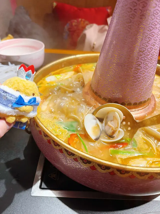 走進「香香宮煮」,第一印象是**華麗得恰到好處的宮廷風**——金碧輝煌的燈光、紅柱金瓦的擺設、再加上幾面雕花屏風與絢麗的宮燈,讓人宛如踏進一場華服盛宴。最妙的是每個角落都設計得頗有心思,明顯為「打卡位」而生:從模擬御花園的拱門,到印上龍鳳圖案的椅背,隨手一拍都自帶「貴氣濾鏡」。**泰順公主·龍蝦湯卜卜蜆湯鍋** 這鍋可說是全場主角。湯底香氣厚而不膩,龍蝦殼的鮮甜完美滲入湯中,蜆肉飽滿、湯底帶著微微的鮮辣感,喝一口有明顯的層次:螫味、海味、再回甘。火候控制得好,海鮮剛熟,既保持彈性又沒腥味。**艾莎公主牛肉寶盒** 名字夠夢幻,本身造型也像藝術品。牛肉切得厚薄均勻,包裹著些許蔬菜與自家特調醬汁,咬下去多汁而不柴,鹹香之間帶點甜潤。這道菜的賣相與口感都拿捏得不錯,令人印象深刻。**珊瑚蚌** 新鮮是關鍵。肉質爽口脆彈,輕輕一咬就能感受到海水的甘甜。簡單涼拌已足夠,反而能突出原味。**鮮魷魚蝦餃(手工餃黎)** 完全感受到「手工」二字的誠意。餃皮薄得幾乎透明,內餡滿滿的鮮魷與蝦肉,口感層次分明。配上微辣醬油,更添風味。**魚滑雙拼(手打蟹子蝦滑、瑤柱乾貝滑)** 滑類是火鍋的重要靈魂。蟹子蝦滑彈牙之中帶著輕微的蟹香,瑤柱乾貝滑則更甜、更細膩柔滑。兩者在湯鍋中滾幾下後,質感剛好,一口下去讓人滿足。**自家製足料竹䉀茅根** 餐後別忘了這一味。清甜潤喉,微微的竹蔗與茅根香氣自然不造作,正好平衡整桌的濃郁海鮮味。「香香宮煮」將**宮廷風格與打卡文化**結合得相當自然,華而不俗,菜品不僅好看也有內容👍 …Read More