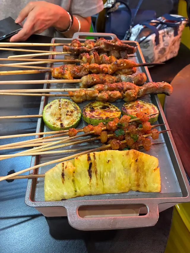 同fd底子舊同事食個靚晚飯,成日經過呢間舖頭,今次真係去幫襯啦,裝橫好吸睛🤣🤣🤣有120蚊10串套餐,亦有海鮮啊,吐司饅頭其他選擇……-一口雪花牛-爆香肥牛串-牛舌串-五花肉金針菇:因為金針菇份量比較少,反而燒到脆身,有驚喜-五花肉串-雞肉串:唯一認到佢係雞肉,唔鞋身,ok-雞軟骨串-功夫肥腸串-菠蘿:唔酸-翠肉瓜-燒白鱔:唔記得留意個火,燒到變左黑色,但係都冇燶味,都算好食-忘不了牛油粒:最神奇嘅串,每串得4粒比青豆更細嘅東東,但係咬落去爆汁,好重牛味-暴打渣女茉莉檸檬茶:好飲!!唔酸,多帶甜味,茉莉比檸檬更濃-潮汕牛肉丸:脆皮丸,不錯-黑椒腸:fd子鍾意食,佢話辣味出d-台灣腸:我蘸咗啲煉奶嚟食,變左煉奶脆皮腸-魷魚板串-魷魚鬚串:細細條嘅魷魚鬚點樣可以打棟咁串落條木串,係我唯一好奇嘅事-杏鮑菇:菇底韌,菇頂軟,有汁係頂到噴出黎😅😅令人想入非非-蒜蓉豆皮:豆皮包住蒜蓉,好香,但係豆皮有d難咬-豆腐串:幾脆口-韭菜:好黐牙-燒茄子:整得幾好食,但係有啲辣,食到最尾辣到條脷痛,然後我放棄了-包漿豆腐串:脆皮豆腐-超愛燒吐司:毋庸置疑,呢個最好食,吐司鬆化香脆,加埋煉奶一絕,如果可以再加蒜蓉可能仲正😆😆😆😆😍😍p.s.無寫嘅一係分唔出咩黎,一係無咩特別🙂…Read More