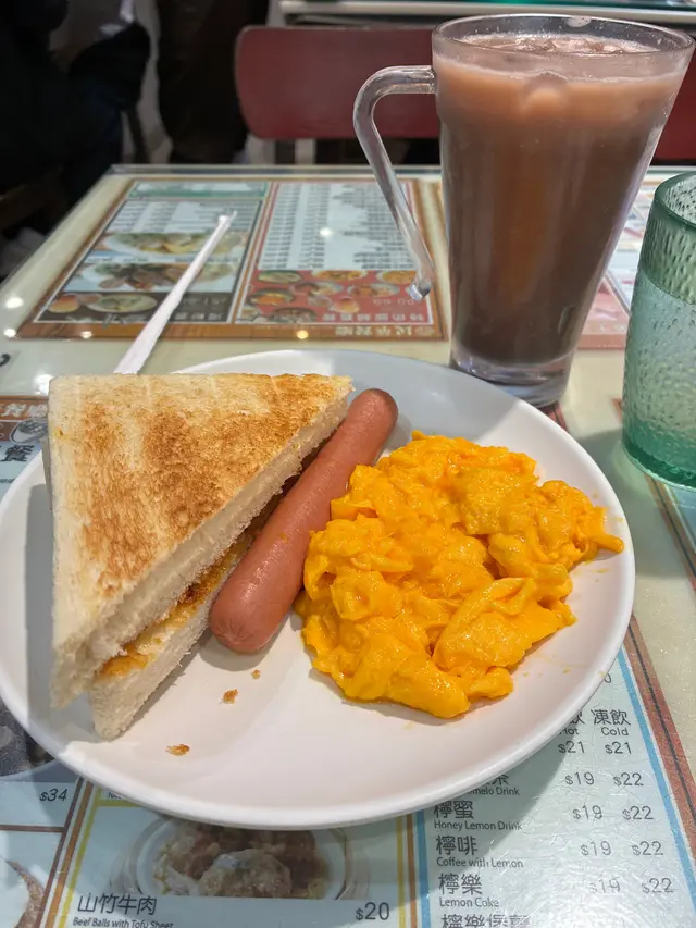 好耐無食茶餐,久違咁樣食返一次先。呢間係我食左咁多年黎,質素無差過嘅茶餐,落單仲進化到全qr code,有咩要求都可以完全滿足😌滋味常餐(即烘牛油多士、香腸炒蛋、鮮茄牛肉通粉、凍阿華田)牛油多士厚切,牛油擦得均勻,烘度適中,脆中帶軟,好好食😋腸仔唔會太鹹,但係又唔會腍到飛起,好鍾意食😆炒蛋係我最愛嘅野,唔係fluffy個款嘅炒蛋,係有質感,仲有少少蛋皮狀嘅炒蛋,無落奶煮都煮到軟綿,顏色金黃,完全無退步🥰🥰🥰茄牛通我要左多湯,所以黎到就比較滿,無以前咁稠嘅,不過我覺得都還ok,唔係淡味嘅番茄水,仲有番茄可以撈黎食架,牛肉就好普通嘅軟身牛肉,完全無筋,無咩特別。呢度係我飲過最好飲嘅華田,好老實,佢地有落奶嘅,口感順滑左嘅同時,阿華田都會甜d,味道再出d,仲要佢地嘅少冰,係真少冰,今日d冰少到唔夠令杯野凍,望住d碎冰係霎眼之間就融晒,個日太熱嘅話記住唔好叫少冰🤣🤣🤣…Read More