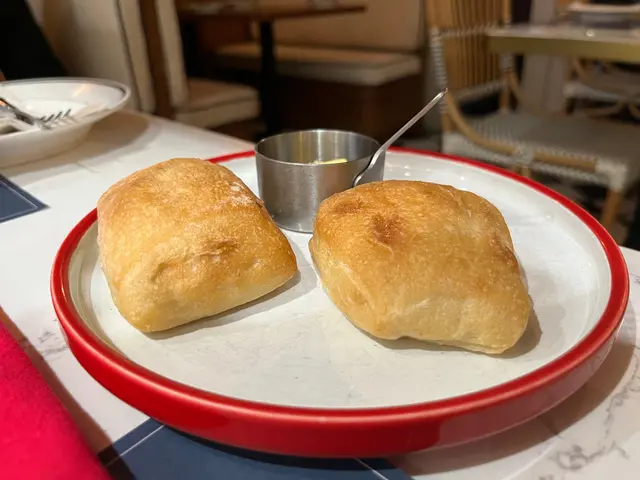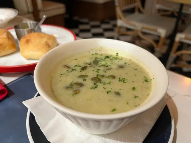 點餐後先送上麵包和餐湯。餐湯質感濃稠creamy,頗重薯香味,同時也有一些青醬、香料葉的味道