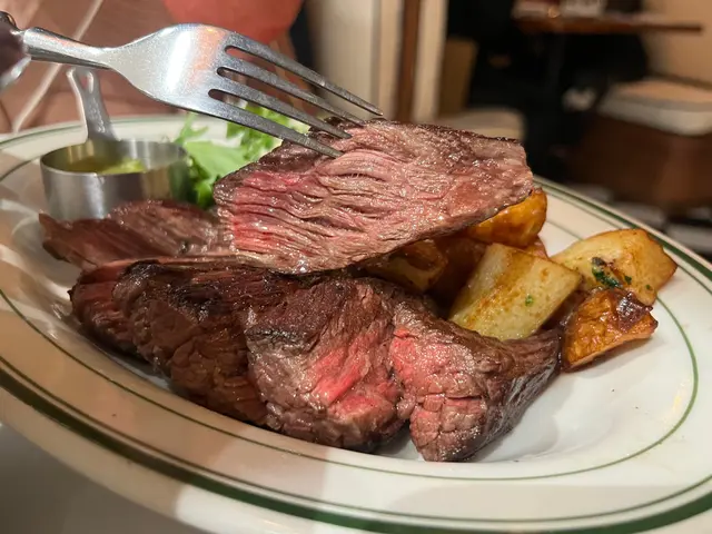牛胸腹扒選擇了7成熟,上枱時已切好片狀。牛肉充滿微微嚼勁,質感紮實有彈牙感。入口juicy,肉汁在齒頰間溢出
