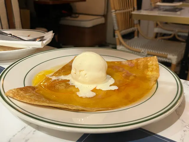 先有店員淋上火焰橙酒,來一個視覺享受。可麗餅柔軟,餅邊有少許脆身,牛油香味濃郁。入喉後再感受到橙酒的橙香味。再加上一球雲呢拿雪糕,口感冷熱交融,更滋味