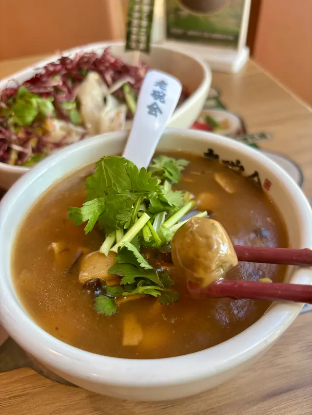 最近在商場地下發現一間陝西小館,是老碗會的香港首店,位置面向大街,光猛開揚,座位寬敞,環境舒適。餐廳主打地道陝西風味,口味有驚喜,感覺像把陝西街頭小吃搬到城市裡。還有冰糖紅棗茶任飲,微甜清香,飲完暖胃。🏅現烤肉夾饃($23) 外皮酥脆,咬開微微掉皮,內餡鹹香,肉質紮實,連同酥皮一齊吃非常香口。🏅陝西手工涼皮($39) 涼皮厚實Q彈,帶有韌性,配上爽口蔬菜,微酸微辣超開胃,清爽又有層次。🏅招牌黃牛腩𰻞𰻞麵($57) biangbiang 麵寬厚有嚼勁,掛汁力強,牛腩滷得入味軟嫩。建議食前拌勻醬汁,香辣帶點酸甜,非常過癮。🏅陝西麻醬野薺菜餛飩($30) 餛飩皮薄餡多,野薺菜味道清香,配上香濃麻醬,入口滑順帶花生香,鹹香中帶絲絲回甘。🏅西安牛肉胡辣湯($23) 湯底胡椒味突出,夠辣夠香,內有牛肉丸、雲耳等配料,濃郁又夠料,喝完身體都暖起來。🏅百合五穀雜糧粥($15) 甜度低,質地綿滑,五穀香氣自然,百合清潤,是一款健康又有飽足感的小品。🏅鮮烤地標羊肉串($18) 用上羊腿肉,肉質緊緻不羶,外層微焦帶炭香,香料味不搶戲,剛剛好提升羊肉原味。…查看更多