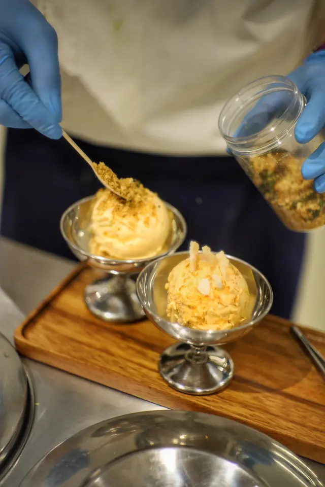 What hits first is flavour: the salted egg yolk scoop is lush and velvety, its golden richness cut by the crunch of cereal that lingers like a savoury‑sweet echo. Then comes laksa — a daring swirl where galangal, lemongrass, turmeric and dried shrimp bloom against a creamy coconut base. It’s aromatic, spicy, and just sweet enough to soften the edges, a spoonful that feels like a whole hawker stall distilled into ice cream.These aren’t novelties, but carefully tuned recipes that balance indulgence with restraint — reduced sugar, plant‑based options, and sourcing that respects the pantry traditions they draw from. The tasting flight (HK$128) lets you savour the contrasts side by side, a journey through Southeast Asia’s boldest flavours in scoop form.@icecreamcookieco.hk📍G/F, 18 Gough Street, Sheung Wan#IceCreamCookieCoHK #SaltedEgg #Laksa #ArtisanalIceCream…Read More