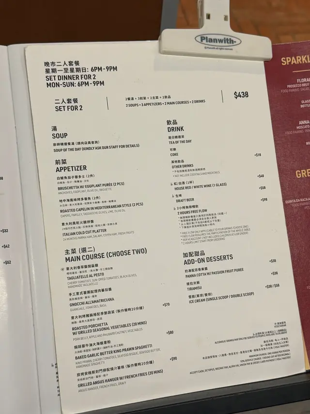 今晚去呢間餐廳,整體感覺幾開心,氣氛chill,啱晒慢慢傾計食嘢。Set dinner for Two …..也不錯🥰焗蒜蓉牛油大海蝦意粉……..有大海蝦,車厘茄等…醬汁海鮮濃汁味道ok ,手工意粉口感夠煙靭,亦都掛汁👍海蝦開邊..肉質鮮嫩!炭烤安格斯封門柳配燒汁薯條…….安格斯風門樓五成熟,入面粉紅多肉汁,邊位有少少焦香👍前菜是……煙肉火腿配哈密瓜幾清新……烤燒春魚👍個餐湯係薏米蘑菇湯夠濃稠不錯!…Read More