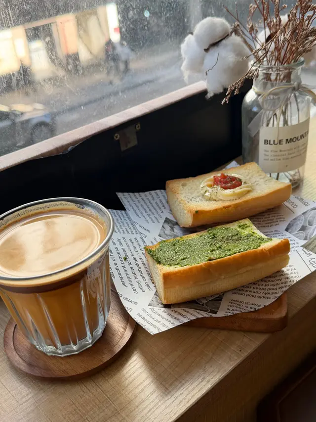 Brew Dog Coffee 坐窗口位又有陽光,打卡一流。酸種麵包,明太子醬同埋羅勒青醬好脆口配個醬都OK😙😙😙煎虎蝦 香草濃暇汁扁意粉……..啖啖都係蝦味,蝦好爽甜,又煎到香香的🤭🤭慢煮雞胸羅勒青醬扁意粉⋯⋯青醬雞意粉幾驚喜,汁夠香又唔濁,雞肉嫩滑唔鞋👍👍開心果咖啡幾特別…….上面奶泡加堅果碎好香🥰Dirty 髒髒咖啡也不差🤭🤭 抹茶卷同芝士蛋糕甜度ok,慢慢hea住食幾舒服🥰🥰🥰…Read More
