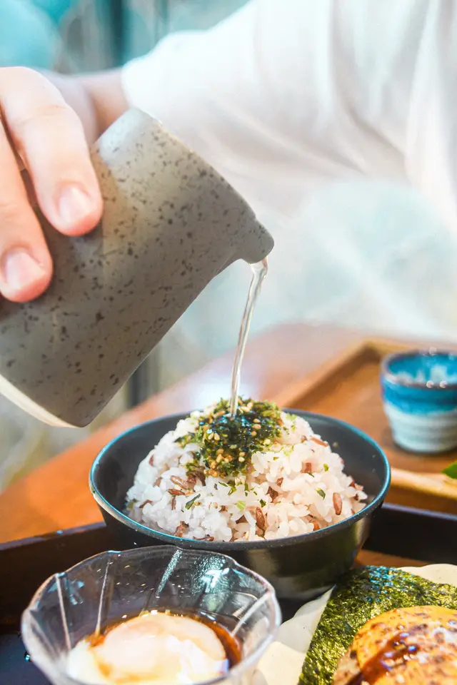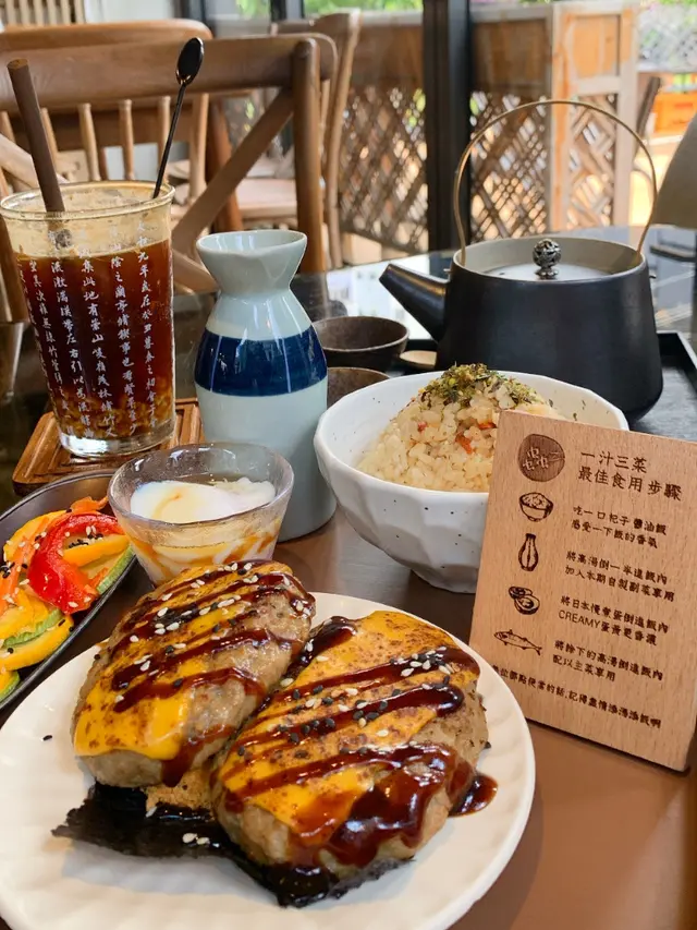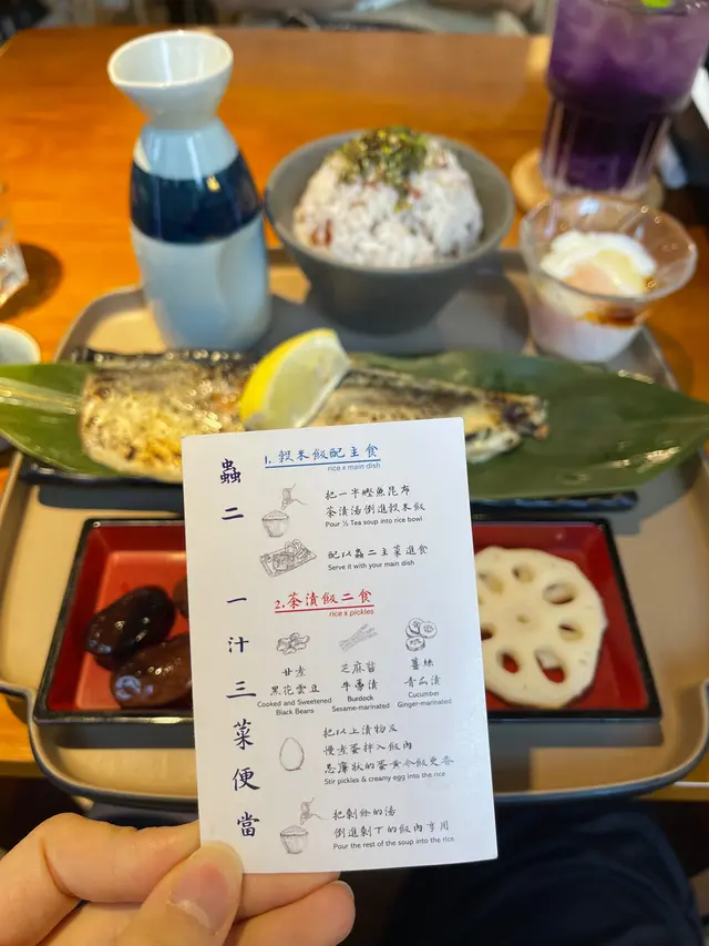 收藏咗呢間超耐!不停出現起朋友story,終於到我試事先經網頁book定位專程嚟食佢個《一汁三菜便當》 ($150)一汁:鰹魚昆布茶高湯三菜:副菜、慢煮蛋、主菜 (六選一)「蟲二高湯蔬菜凍」呢個副菜第一次見,有新意入邊有bb粟米、秋葵、西蘭花、紫椰菜等冇咩味道,質感有啲奇怪😅唔係啫喱而係似大菜糕唔太啱我口味「大阪燒風味黑胡椒雞扒」雞扒嫩滑厚肉juicy🐔重黑胡椒味調味效法日本大阪燒,有沙律醬、照燒汁同木魚絲,夠惹味👍🏻底部係野菜薯仔餅🥞比較重麵粉,似麥當勞pancakeDry咗少少,如果多啲椰菜會有質感啲好食啲「烤芝士漢堡扒配海苔肉鬆」朋友的,試咗少少有兩大塊漢堡扒好抵食漢堡扒混入咗雞牛豬肉🐷鬆軟多汁面頭落咗片芝士同醬油調味配合海苔肉鬆好餸飯👍🏻「日本穀米杞子醬油炊飯」建議食法(1)淨食(2)倒入高湯 (3)加入日本慢煮蛋 米飯本身混入杞子同飯素🍚淨食偏乾然而米飯粒飽滿,口感好倒入鰹魚昆布茶高湯變茶漬飯就perfect🍶仲帶少許鹹味63度慢煮蛋使用日本生食級雞蛋🥚蛋黃成漿狀,黏得住米飯加入咗豉油調味蛋白偏水汪汪,建議撈勻溝飯食自己最鍾意第三種食法🤤輕易食晒成碗 (朋友仲走咗去添飯,食咗兩碗😂)套餐仲配上熱焙茶🍵-味道又日式又fusion,賣相精緻打卡able係副菜奇怪啲啲🙈一汁三菜配三種食法耳目一新位於天台花園,環境好正好chill中間有戶外座位,室內有榻榻米,各有氣氛服務OK,侍應有禮貌價錢上貴啲,有加一,大概$170/人當獎勵吓自己😗…查看更多