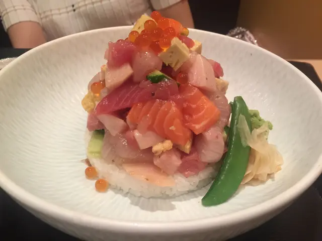 七彩碎魚生飯定食 $198Chopped Sashimi on Sushi Rice Bowl Set·Lunch Set 包括:主食,沙律,蒸蛋,漬物,小食魚生真係好新鮮!😍所謂嘅碎魚生根本同出面鋪頭嘅一塊塊刺身係無分別,佢只係短d但超厚切!😯大愛呀!❤️至於有咩魚生完全係不能盡錄:三文魚、吞拿魚、帶子、鰤魚、章紅魚....總之好多好多🤩(我都有可能辨別錯😅)但總之全部都好好味啦!🤤蒸蛋又係要提嘅因為真係好滑!😚又有好多料!正呀!It’s all about freshness when we talk about sashimi! And this restaurant totally reflects the best! Love it! ·✍🏻整體評語 Overall Comments:💁🏻♀️老實說,呢個價錢食到呢個質素嘅魚生飯,我可以話係值晒!😋性價比高!Worth the high price! 😚·#HungryMeizi #餓妹子…查看更多