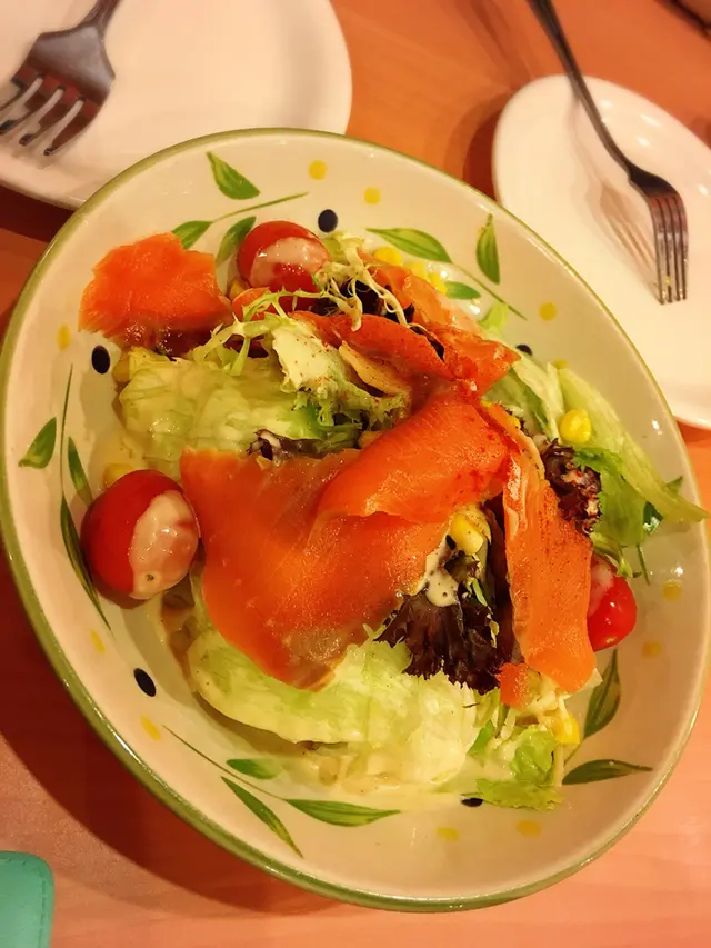很多時候人們覺得吃西餐價錢並不便宜,但這間西餐廳不但菜式種類繁多,而且價錢相宜,味道也不錯,絕對適合一家大小或年輕情侶等光顧呢😆周打海鮮湯🍲有煙肉,薯仔,甘筍,洋蔥等配料,每次來也要點一客喝,味道香濃三文魚沙律🐟鹹鹹的煙三文魚配上爽口沙律菜,加酸酸的沙律醬,用來當餐前開胃菜一流脆脆蝦🦐香脆可口,大大粒蝦肉,價錢便宜,可以一戰原味雞翼(8隻)🐓脆炸雞翼,正常發揮,較支持辣味雞翼🫣帕馬火腿拼盤🥓火腿油亮光澤,充滿鹹香,配飯或意粉一流明太子魷魚蝦仁意大利粉🦑意大利粉爽口彈牙,夠煙韌,配料有數塊蝦仁及魷魚,而且意大利粉亦滿佈明太子,喜歡明太子的你一定要試呢薩莉亞意式餐廳 (雅都商場)屯門屯門鄉事會路112-140號雅都商場1樓S8-10及S24-29號舖…查看更多