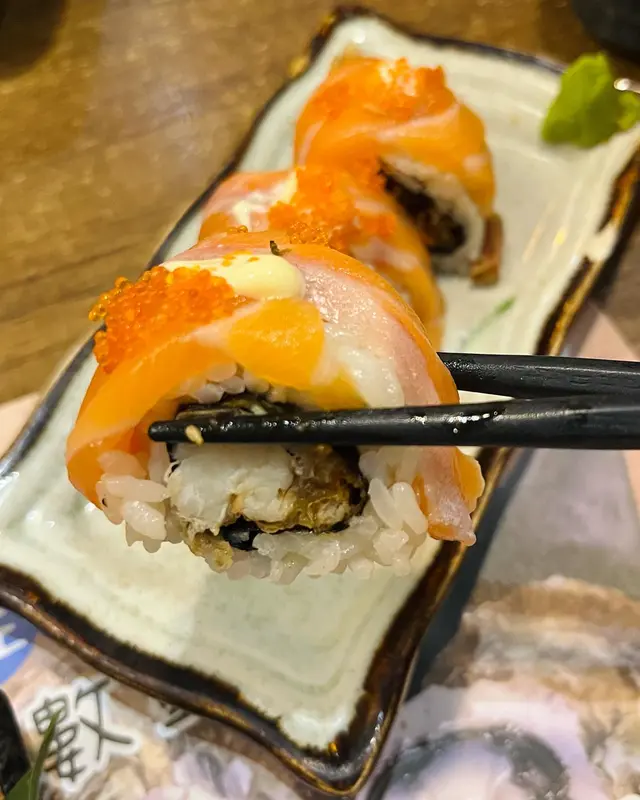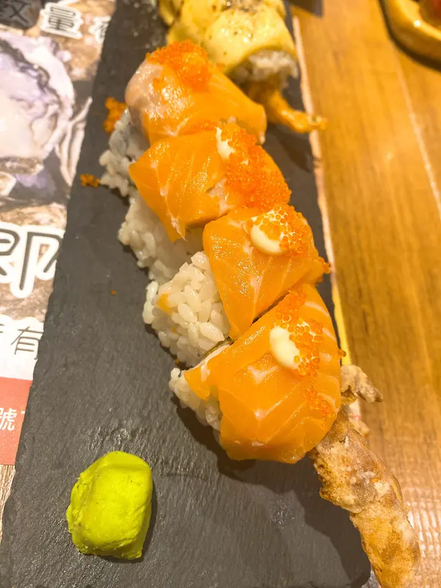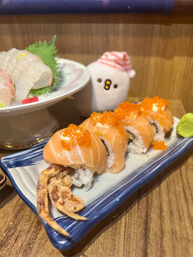 餐廳裝修充滿日本風情,掛咗好多日式燈籠,牆上掛有富士山壁畫,好有去咗日本既感覺~餐廳位置好闊落,食物選擇多,有刺身、壽司、串燒、鍋物等等,仲有二人套餐選擇。串燒伊比利亞豬頸肉 $45豬頸肉質感非常好🐷,有些微妙的油花分佈其中,讓口感更加豐富。肉質很鮮嫩,入口即化,讓人感到非常滿足。鹽燒厚切牛脷心 $64牛脷心肉質嫩滑,每一口都能感受到肉汁的豐富和牛肉的鮮甜。三文魚軟殼蟹反卷 $52三文魚鮮美,軟殼蟹炸得香脆,兩者搭配得非常好,一口咬下,滋味豐富。火炙左口魚壽司 $30味道好正,魚肉鮮甜多汁,配上醬汁和炙燒的香氣,口感豐富。火炙三文魚腩壽司 $33火炙三文魚腩壽司新鮮美味,三文魚腩鮮味十足,燒炙後更加入味,非常好食。廚師推介 池魚壽司 $32食材新鮮,餐廳講是飛機貨,真係非常鮮味,每一口都令人回味無窮!蟹膏鮮帶子刺身 $42帶子鮮甜,蟹膏醇香滑順,配搭得恰到好處,一試難忘,一定要點😍!磯煮鮑魚 $78味道甜甜地醬酒味,鮑魚磯煮到軟腍,鮮嫩多汁。特大赤蝦壽司赤蝦新鮮彈牙,加埋啲醋飯,一口咬落去真係超級爽口!📍 天鳥居酒屋 (天水圍)天水圍天華路33號號T Town北翼2樓N212號舖…查看更多