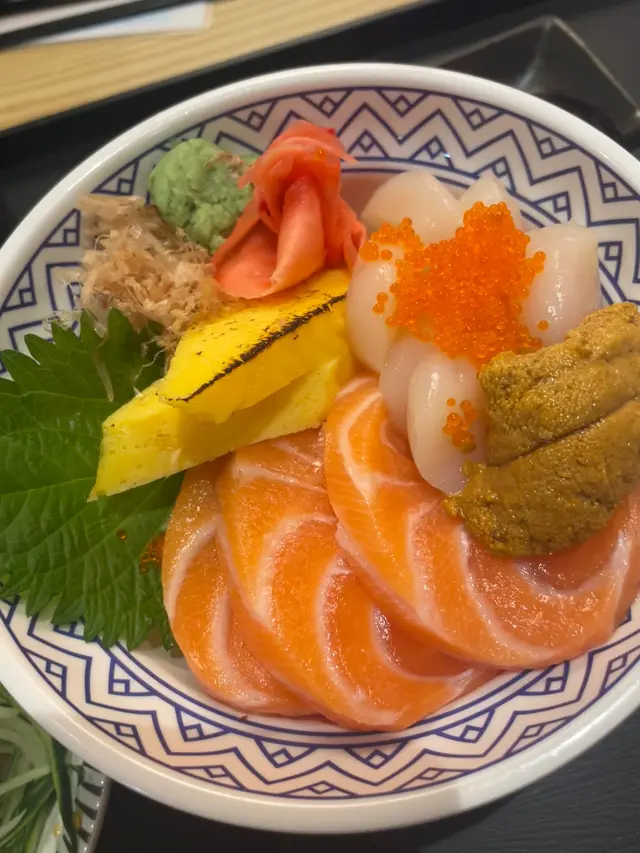 上星期去觀塘駱駝漆大廈發現11/F原來有間刺身丼飯店👀小店價錢親民 食物款式選擇多 壽司丼飯熱食串燒🫶🏻應有盡有啱晒我有時去觀塘附近上Yoga/Pilates class可以方便輕鬆食幾件壽司😆唔洗成日食連鎖店今次我同朋友叫咗4款不同的丼飯 再加壽司拼盤 4個人分享👉 鮪魚中腹蟹蓋海鮮丼 $165海鮮丼的蟹膏味道不錯❤️幾適合用來撈飯食🥰蟹蓋經過炙燒後🦀提升了蟹膏的鮮味💕👉 梅花丼 (七品刺身) $168👉 鰤魚魚籽海膽丼 $140海膽入口即溶😍雖然不算超級鮮甜 但完全不會覺得腥👍👉 三文魚珍寶帶子海膽丼 $134珍寶帶子好大粒 魚生很厚切 未去到好肥美但份量足料😚👉 牛油果軟殼蟹卷 $78睇落好吸引😍牛油果熟得剛剛好🥑入口即溶有鮮味炸粉不會太厚🤭但有少少淋咗🥲如果入面的軟殼蟹炸得香脆一點就更好!👉 梅壽司盛盒 $139壽司拼盤當中我最欣賞辣味三文魚軍艦🤩味道突出 辣辣地又幾惹味喎!其他壽司睇落大大件好飽滿🤩有三文魚, 吞拿魚, 帆立貝, 油甘魚同炸蝦卷🍤味道中規中矩 勝在份量十分慷慨😌跟餐附送的免治雞肉串咬落去有少少雞軟骨粒 口感豐富☺️仲有每個set都包含麵豉湯同蟹籽沙律沙律幾新鮮開胃🥒整體來說 大家都食得好飽😚性價比高👍…查看更多