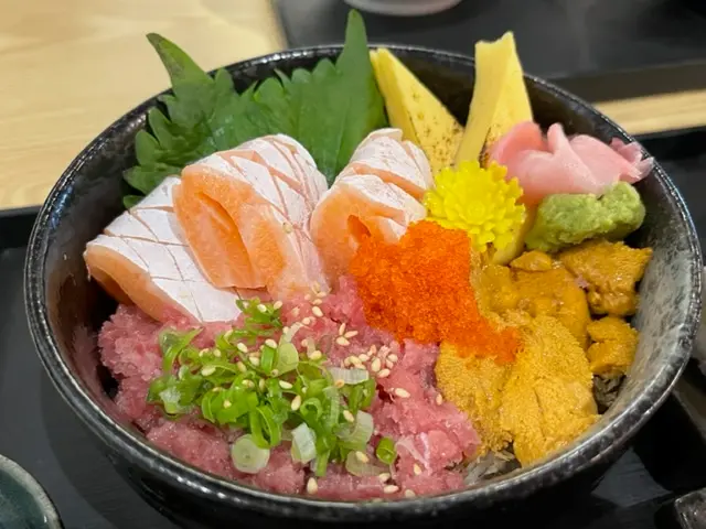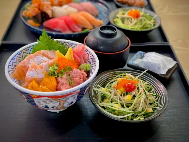 去開觀塘駱駝漆大廈攞貨,順便尋覓一下附近的餐廳,夏天最想食壽司刺身最開胃,所以就揀咗位於第三期的日本料理餐廳,行到門面幾吸引,有種感覺唔似開喺工廈裡的餐廳。🍣⛩️🌸🥢✨ 三文魚腩拖羅蓉海膽丼($128),丼飯的配料好豐盛,三文魚腩肥美、油香味重,粒粒馬糞海膽好甘香,拖羅蓉鮮甜香滑,再加上旁邊的甜蛋、蟹籽陪襯,令整碗丼飯的色彩生色不少,增加食慾,胃口大增。🍱✨ 整個套餐還有味噌湯、沙律和雪米糍,豐富又抵食。🍲🥗🍨呢份係其中一份午市套餐,剛好來到餐廳接近5:30,仲趕得切叫午市套餐。😄🙌🏼✨ 梅壽司盛盒($139),是餐廳的招牌壽司拼盤,這個是全日餐的供應,同時也是店員最推薦最好賣的一個套餐。壽司8件、軍艦2件和炸蝦卷3件,樣樣有。壽司上的刺身(三文魚、吞拿魚、油甘魚和帆立貝)好新鮮,刺身和壽司飯的比例很好,刺身長身大片、壽司飯比例相對較少,一口一件很滿足。軍艦是辣味三文魚餡,好惹味。炸蝦卷的天婦羅炸蝦新鮮炸起,帶點微暖,卷物的飯沾滿粒粒的蟹籽和沙律醬,口感豐富。🍣🍤😋✨ 整個套餐還有沙律和雞肉棒。🍢🥗這個價錢刺身/丼飯,絕對是物超所值🥰🫶🏻…查看更多