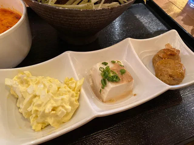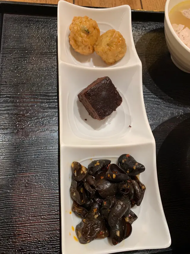 久違係太和搵食,行過木船,覺得啲裝飾好吸引,又好耐冇食泰國野,所以就入去食😚成間餐廳嘅裝飾都係用木組成🪵,充滿泰國風情,亦有麻繩等裝飾好似喺船入面咁🛶,環境唔算細,都坐得舒服 😋嗌左燒豚肉飯定食同青咖喱吉列豬扒飯定食,用兩杯龍眼冰 龍眼冰🍹首先黎嘅係龍眼冰,比預期中有啲甜,但龍眼數目好多,適合用黎解辣!燒豚肉飯🐖🐖聽講燒豚肉飯係招牌黎,果然豚肉好好味,一片片唔會太肥膩,入口食到醬味好出,加上個飯有蛋係中間,昇華左成個飯~飯係上面都鋪滿木瓜絲,特別得黎都幾好味😋青咖哩吉列豬扒飯🥢🥢至於青咖喱吉列豬扒飯,因為本身唔係好中意食咖喱,所以覺得不過不失啦,吉列豬扒炸得剛剛好配菜方面,係有啲失望嘅,冬陰功湯太肥膩,而肉丸湯就普通,三款配菜都唔係好夾,有蛋沙律、brownie同肉丸,三款嘅味道都好唔同,同主菜唔太夾。 總括黎講,推介燒豚肉飯,下次再黎會想試jumbo湯河,見隔離台食緊,賣相好似幾好😋👍🏻另外都想讚佢哋店員服務好好,咁啱聽到隔離枱有個客人跌咗口罩,店員即刻話佢哋鋪頭有可以比個佢,好有人情味。😊 仲有係午飯時間咁忙店員都仲好有禮貌,抵讚!…查看更多