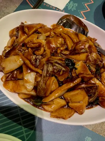 餐廳裝潢別具特色,餐牌的設計等都花上心思,空間亦十分寬敞。下午茶套餐的份量頗多,會附送豆漿一杯,性價比高。雞絲拌粉皮 (+$12)• 跟餐加配$12可以得到的一道餐前涼拌。• 花生醬順滑濃郁,吸收在雞絲之間,撈在煙韌滑溜的粉皮上一齊食,十分滋味。上海炒年糕 ($42)• 充滿上海風味的一道主食,比起一般的炒年糕相對清淡不算油膩。• 年糕口感煙韌入味,配菜的份量亦不少,每一口炒年糕都可以夾雜白菜和蘑菇片。松子菜粒炒飯 ($42)• 飯粒乾身粒粒分明,油份同樣恰到好處。• 青菜和火腿處理到像松子般的大小,口感豐富,而松子獨特香味令炒飯味道更加昇華。…查看更多