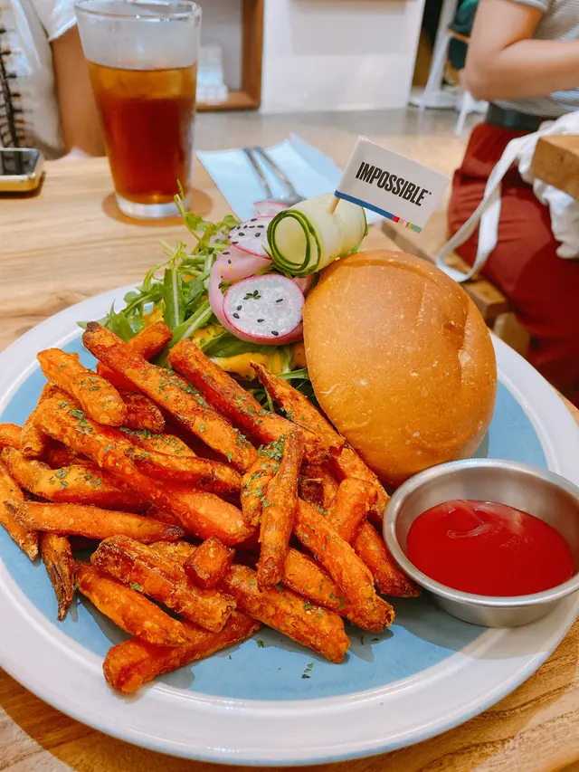 係深水埗開始佢地嘅第一間到而家唔同地方都有佢地分店素食cafe係香港應該五隻手指數得曬🤔可以話係一間高質素食cafe素食者可以選擇嘅cafe🔥同事都成日大讚素年係高質素食cafe🙌🏼🙌🏼一向唔會點食素嘅我都覺得不錯不錯越開越多間分店果然有佢嘅原因🙈性價比都算高 不過個量又真係多左啲🔖所以menu都寫到明「食物份量偏大,請通知我們減少份量」重點黎!佢地就算係素食都可以整得出真肉嘅外貌 塊漢堡仲要整到七成熟有肉汁嘅樣😂👍🏼*✨建議去之前訂位,lunch hour都有唔少打工仔去食 (🙈我就係其中之一)*❣️不可能肉醬意大利粉 $98❣️日式咖喱吉列豬扒意大利飯 $118❣️不可能漢堡包 $128❣️白汁黑松露雜菌意大利粉 $88❣️番薯條配黑松露純素蛋黃醬 $68❣️凍伯爵茶 (跟主食附送)❣️柚子青瓜梳打 $40(加配其他飲品可-$12)…查看更多