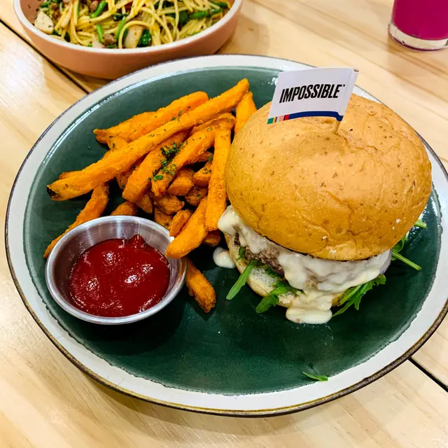 係深水埗開始佢地嘅第一間到而家唔同地方都有佢地分店素食cafe係香港應該五隻手指數得曬🤔可以話係一間高質素食cafe素食者可以選擇嘅cafe🔥同事都成日大讚素年係高質素食cafe🙌🏼🙌🏼一向唔會點食素嘅我都覺得不錯不錯越開越多間分店果然有佢嘅原因🙈性價比都算高 不過個量又真係多左啲🔖所以menu都寫到明「食物份量偏大,請通知我們減少份量」重點黎!佢地就算係素食都可以整得出真肉嘅外貌 塊漢堡仲要整到七成熟有肉汁嘅樣😂👍🏼*✨建議去之前訂位,lunch hour都有唔少打工仔去食 (🙈我就係其中之一)*❣️不可能肉醬意大利粉 $98❣️日式咖喱吉列豬扒意大利飯 $118❣️不可能漢堡包 $128❣️白汁黑松露雜菌意大利粉 $88❣️番薯條配黑松露純素蛋黃醬 $68❣️凍伯爵茶 (跟主食附送)❣️柚子青瓜梳打 $40(加配其他飲品可-$12)…查看更多
