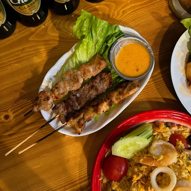 門外貼滿餐牌,價錢合理,望落吸引見餐廳坐滿食客,就決定試下排一陣隊原來由泰國人主理,菜式味道就更加正宗🔅泰式柚子沙律 $79滿滿嘅酸酸甜甜清新味道,夠晒開胃🔅串燒拼盤(3串)$49豬雞牛每款各一,帶有炭香燒烤風味🔅正宗泰式烤魚 $159採用鹽燒嚟烤魚,魚皮脆卜卜,可以成塊掀起而底下嘅魚肉,係非常嫩滑而且無咩細骨,啖啖魚肉,食得方便極力推薦👍🔅泰式炒寬粉(海鮮)$78寬粉口感好特別,有少少Q彈感覺配菜有鮮蝦同魷魚,仲有蔬菜同炸蒜香口而且有充滿鑊氣🔅菠蘿炒飯(海鮮)$78鮮蝦、魷魚、青口,加上肉鬆果仁同提子乾鹹鹹甜甜,又有幾重口感而佢用嘅提子乾係大粒青提比起常見黑色提子乾會再甜d同juicy d…查看更多