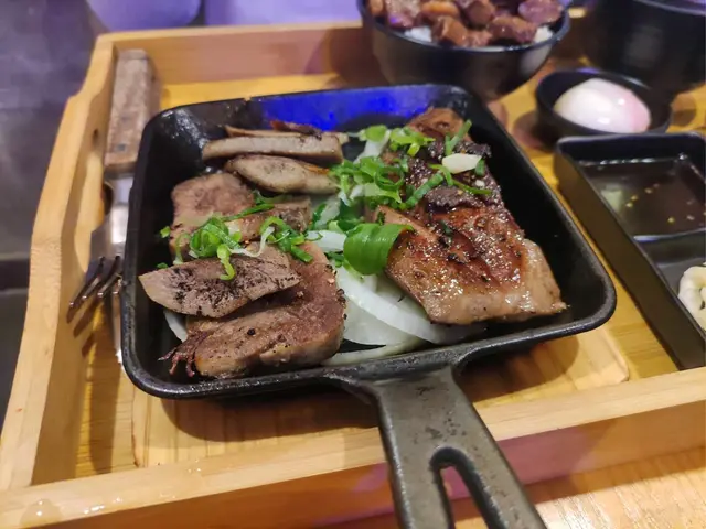 GyuTown牛舌專門店 經朋友介紹呢間專門店,身為牛舌愛好者嘅我一定要試試。 平日晚上6時多入座,襯仲未排長龍就入左去就座,因為店鋪比較細,隔左一陣,外面已經要排隊。 餐牌上有鐵板同重盒選擇,最後我選擇左鐵板系列嘅二重牛舌再加套餐38蚊升級牛舌筋溫泉蛋飯。 鐵板一上枱,已經好香噴噴,牛舌芯嘅口感爽口嫰滑,點左佢地嘅自家醬汁更加好食,升級牛舌筋飯係必須,佢有少少似台灣魯肉飯嘅感覺,個醬汁又係好好食配飯係一流。 整體而言,絕對係值得牛舌愛好者一試,只係座位比較迫,坐得比較辛苦。