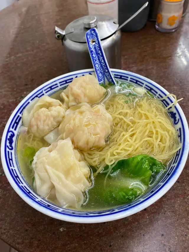 是話有啲趕時間又肚餓。經過嘅時候見到有個姐姐喺度包雲吞,咁就入去試吓,舖頭環境係舊式嘅雲吞麵舖,冇特別裝修,睇咗餐牌後,我叫咗個雲吞麵,因為好想試吓親手包嘅雲吞😝,唔洗幾分鐘已經整好,嚟到嘅時候勁有懷舊嘅感覺,佢用隻米通碗裝住啲麵,熱辣辣😃,除咗有五粒大大粒嘅雲吞之外,仲有菜,好窩心,一啖食落去有驚喜🤩,雲吞入面既蝦🍤彈牙新鮮,雖然d蝦多,但係同肉嘅比例啱啱好,而啲麵好彈牙,個湯底感覺上有啲似大地魚湯,我自己就覺得好好味la😋…查看更多