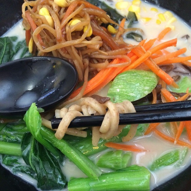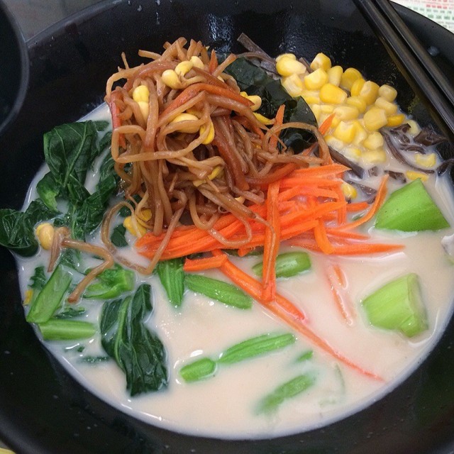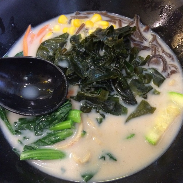麵底我選了蕎麥麵,聞上去有微微的香氣,口感煙韌不太淋,我覺得生熟度掌握得不錯,配著香滑的豆乳湯底和夾著不同的配料,口感味道豐富不覺「素」