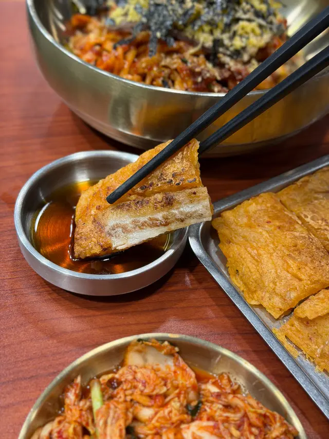 店在尖沙嘴山林道。小店一間,乾淨利落,桌距夠,坐得舒泰。午晚高峰常滿座,門口有人候位。服務員有禮,主動添水,上菜節奏穩。落座會先上泡菜。看得出是自家醃製,辣度輕,蝦醬帶出鮮味,灑上芝麻更香,單吃也不鹹。主打是自家刀削麵。我們點了牛骨湯和雞髀兩款。牛骨湯清而有味,牛香明顯,不覺負擔。雞髀刀削麵份量足,整隻雞髀躺在面上,再配一大顆馬鈴薯。湯頭較濃,鹹度比牛骨湯高一點,但沒有味精感,吃完不渴。麵條邊厚中薄,帶嚼勁,吸湯力好。小吃也有驚喜。五花肉泡菜煎餅厚薄適中,表面脆,裡面軟糯,咀嚼有層次。雙拼蒸餃子個頭很大,豬肉與泡菜各兩顆,餡料紮實,調味清,鮮味突出。整體價錢合理,份量實在。想吃一餐暖身、不花巧的韓式麵與點心,這裡可靠。…查看更多