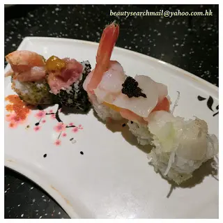 對吃貨來說,放題是不錯解壓方法。這次由好友帶路,到放題集中地旺角一拼。平日晚市時段 ($198/2小時),人龍居然不少,還好早有訂位。放題必食的刺身,沒升級已有12款可選。狠狠地點單,看著捧來堆得密密麻麻的一大盤,份量足得笑了。大熱刺身如三文魚和吞拿魚,淡味帶點冰凍感,水準一般。以香口的劍魚腩,和配惹味泰式醬的有頭甜蝦較為突出。升級體驗 (+$50)的珍寶帶子、赤蝦等刺身,看著大隻吸引,可惜偏向淡口。反而油甘魚刺身鮮甜,回頭的好友大讚比以往好吃。另一番本潛力股,是生蠔任食。好友一口接一口,已鯨吞2隻。說口感滑溜,轉眼還追加夠半打。升級之列,個人卻偏愛日式蒸蛋。比奶凍要軟滑,又夾有蝦、八爪魚等海鮮碎粒。一試傾心,沒錯是飽肚物,仍忍不住要encore,不過再來的一碗滑溜度降低了……飲品大多是罐裝,找到+C檸檬和C&C蘋果已心滿意足。眼闊肚窄,習慣放題不怎樣點壽司。來了一份五行壽司,以為送錯,原來是4人訂台的福利。以金、木、水、火、土為主題,配料比點單紙要豐富,居然有海膽、金箔。不過不失,勝在小巧不會太飽肚。蝦類在刺身失利,燒物列的鹽燒虎蝦卻有驚喜,甜味被鹽誘出。一串兩粒的汁燒帆立貝鎖有水份,容易咬開。素來是穩陣之選的牛油燒粟米,過甜了,又好像沾了其他味道,怪怪的。天婦羅系火喉適中,有不少亮點。炸蝦意外的滑,日本蕃薯大片鬆脆。炸芝士年糕自然少不了,還有少見的秋葵明太子,釀了魚肉,感覺似煎釀三寶呢,哈哈~揚物系中,欣賞炸海老餃子,比豬肉餡甜美。芝士薯波咬開發現是粉心的,少許失望,不過仍不錯吃。甜品不可不說的,是焦糖菠蘿。焦糖脆皮把甜度拉高,點上8塊,排著會像pizza喔~富士蘋果一口大福,亦是必試之選。軟糯的粉團中,裹著蘋果粒,無死甜。樣子大小跟荔枝雪米糍相似,味道卻更出色。若不見飽,真想瘋狂的吃!至於泡芙、炸朱古力香蕉,感覺淋身,可以pass……原本滿心期待著櫻花水信玄餅,可惜漏單吃不到。 份量難得足秤,但有漏單和耐出菜情況,這天集中在揚物、炸物、甜品幾類。建議考慮肚量,可決定重點,注意重覆出菜的可能就是了。整體來說,水準算中等,有少量特色食物,如水信玄餅、秋葵天婦羅,可以一試。…查看更多