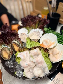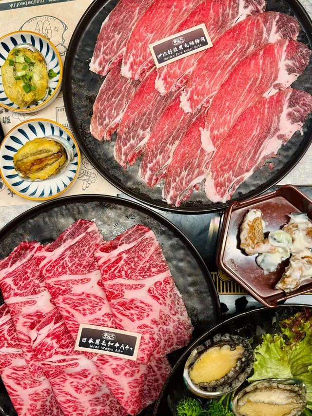 朋友知我大食帶我去食牛大人最新日本黑毛A4和牛套餐,全部上得好快超開始好豐富,果然真食到超飽😆日本黑毛和牛送M9和牛牛丸和海鮮拼盤大大碟,有生蠔鮑魚鱔片,生蠔熟咗都依然好大只脹卜卜鮮甜☺️估唔到牛丸真有傳說中彈彈牛丸感覺,我哋掛住傾計完全忘記湯內和牛,隔了幾分鐘都依然嫩滑無比,牛脂肪分布均勻,入口即溶肥而不膩,牛香味十足🤩*伊比利亞黑毛豬梅肉* 肉質細嫩多汁,味道豐富,口感層次鮮明。 即叫期間限定經典鴛鴦鍋(聰明魷魚沙茶鍋+養生菇菌燉雞鍋)茶鍋香濃帶鮮,搭配養生菇菌燉雞鍋大半只雞在湯內,味道層次豐富,2款既有濃郁也有清淡,食得好自在。 驚喜嘅多款特色鮑魚料理(美乃滋鮑魚酥、柚子燒汁鮑魚、古法醉鮑魚)有多款創新做法,美乃滋鮑魚酥外脆內嫩,柚子燒汁帶清香果味,古法醉鮑魚醉得入味又保留鮮甜。吸引到我仲有懷舊系列菜式-*和牛橘梨豆腐*酸甜配合得好,相當開胃🤤*蝦蝦霸霸脆多士*香脆彈牙而不油膩👏*阿嬤豆乾魚蓉面*感覺好地道,又帶住濃濃嘅傳統風味,仲有豆乾好滋味,魚蓉炒麵味道滿足!而且份量啱啱好好有心思。*烏金墨汁手作腸*香濃又創意,墨魚🦑彈牙。其他仲有三和夜市雞皮卷、海苔鹽酥雞、夜市撈脆薯等懷舊味道同新潮做法結合。 特色甜品芒檸蜜西米爽清新又解膩,蜜桃愛玉冰同伏特加特調嘅港式檸檬茶18+,有果香又有酒香,非常配搭。還有好多台灣直送的蔬菜都好新鮮,餐廳調味醬料非常廣泛。走時候服務員叔叔溫馨提示我食雪糕,我哋九秒九去拿,飽都要食🤣…查看更多