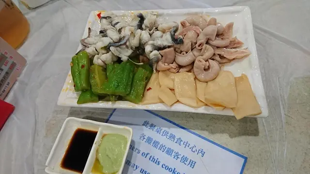 轉眼幾年,時光飛逝,光陰似箭,日月如梭,有緣再臨伍仔記。因為甚少係大埔墟活動,所以今次全家總動員專程走到新街市係非常罕見及難得,預祝母親節晚飯。早前嘗試打電話訂枱,但接電話位男仕稱四位七點咁早唔洗留檯架,上黎即有。真的嗎?果然黎到即有位,本來興致勃勃想食海鮮,但只有大路普通花蛤、蟶子、東風螺、海蝦、海魚,無蟹無帶子。伍仔記冷盤,保持高質,𣎴過阿媽細妹始終完全食唔到苦瓜呢!我以前都一樣,但幾年前試過伍仔記冰涼甘甜爽脆多汁冰鎮苦瓜後,開始食苦瓜了,還漸漸愛上。生腸頭脆卜卜、鱔片彈牙結實、齋鮑片腍而嚥韌,三者配上青芥辣豉油都非常合襯,清涼清香清爽。蠔仔腐皮卷,有創意及其他食肆都未見過,梗係要試試。賣相排得整齊有序,四四方方,顏色陰沉無什麼配菜作點聚,平實單調乏味,都幾悶下。簡單地伴碟加點青瓜片或蕃茄片,顏色奪目而且味道清爽多汁可去油膩感。斜切腐皮卷企起身放,視覺上已吸引好多啦。炸得乾爽鬆脆,聽得到索一聲咬開,非常動聽悅耳!餡料塞得滿滿唔手軟,但肉多蠔少使到蠔味不太突出。蠔仔太瘦,肥美不足所以蠔汁欠棒,味道十分微弱。肉味及腐皮味成功地喧賓奪主,將鮮蠔味蓋得厚厚。要浸上喼汁提提味,酸酸甜甜香口腐皮卷好食,但唔講唔知有蠔囉。豉椒炒花蛤,完全無鑊氣既?靜蠅蠅送到,微暖半點煙也沒有!花蛤發育不良不飽滿,外形瘦猛猛。灼熟之後兜個豉椒汁就出貨,水份及蛋白質均已流失亦無海水咸香。蛤肉淡茂茂,豉椒汁偏甜而豆豉味濃厚而濁。恰巧附近幾檯都係叫花蛤,一齊炒的嗎?花蛤肉甩掉會分贓唔勻喎。清蒸多寶魚,我印象中以為係成千蚊條既貴價魚,原來只不過一百蚊有找啫。想要涼瓜炆,夠香啦麻,但阿媽同細妹食唔到,轉清蒸囉,無所謂。好大條喎,成斤重都有呢,一斤左右大細既魚好嫩滑好味。其實我對比目魚類不太喜歡,即鰨沙魚類,但又唔抗拒既。因為佢地雖然啖啖肉無細骨,嫩滑幼細肥美,但魚味偏淡,鮮味微弱呢,依條都不例外,不過爸媽妹都很愛。沾上蒸魚豉油,我都覺滿意好味的。啫啫雞煲,見到 menu 推介,即時燃起我既食慾,我要食佢呀!上檯喇,份量咁少既?迷你煲黎喎,而且有股𤓓味湧出,啫啫燶了!師傅太唔小心喇,我都知好忙。雞肉過熟以至乾鞋,欠嫩滑欠肥美,醃味濃而重,味道其實不過不失,但添加左燶味呢。豬潤乾硬鞋烚烚,冬菇滑彈清香最好味。金銀蛋莧菜,平時我係唔會 order,但細妹想食。基本咸蛋雞湯味道,莧菜烚得軟腍,平平無奇無感覺,正常質數。豉油皇吊桶,好采點中味超好食啫!新鮮度無與倫比,肉質滑彈帶爽,純天然海產鮮魷味道濃厚,美味可口!lucky 吊桶中還藏著大量魷魚春添,脹卜卜肥嘟嘟!要整隻啪先能滿足我既獸性,蛋味甘香加上鮮嫩吊桶肉,而且散發著豉油香,震撼味蕾!失望地豉油少許偏甜,欠缺惹味,加點薑蔥爆爆去,添點清香及鑊氣就更正!炸 BB 鴿,整個晚餐似乎無咩肉落肚呢,叫隻乳鴿同細妹 share,爸媽話已食飽了。賣相都滿意,骨頭還未 BB 到可以食落肚。剛炸起熱騰騰香噴噴,雖然好咸,不過皮脆肉嫩。依餐真係勁抵食,好耐未試過同全家人食晚飯 $600 蚊有找呢。…查看更多