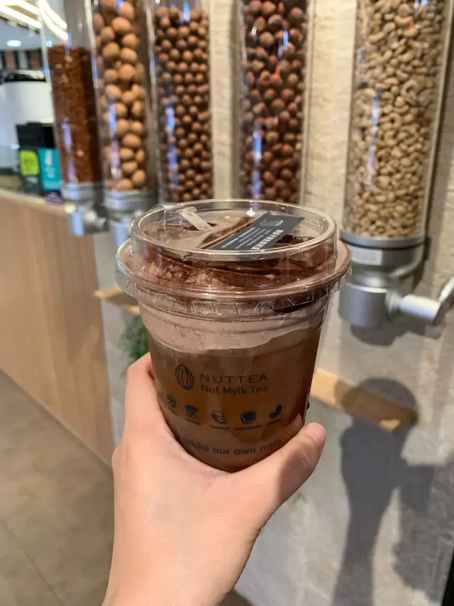 第一次黎時代廣場嘅Nuttea,就係citi super 出面,店面裝修都好有心思,同其他分店一樣收銀隔離都有位可以打卡😆,如果有位可以放飲品堂食就更好喇同朋友每人叫咗一杯飲品,分別係台灣紅玉堅果奶蓋茶同埋伯爵朱古力堅果奶蓋茶🍹🍹因為覺得堅果奶蓋食完都會有啲飽肚咁,所以今次冇加到配料台灣紅玉堅果奶蓋茶🌰這種飲品應該算係nuttea嘅基本款,經典紅玉茶加上堅果奶蓋。茶可以幫手中和返奶蓋較膩嘅感覺,而奶蓋又突出茶嘅香味。今次叫咗微糖少冰,個人覺得味道啱啱好。另一個出色嘅位就係奶蓋上面加咗少少堅果水,令到就咁食奶蓋加堅果已經口感十足。飲品嘅顏值都好高,岩晒打卡。伯爵朱古力堅果奶蓋茶🍫第二次飲嘅nuttea招牌🤎奶蓋上面加多啲可可粉,令到朱古力味更加香濃!奶蓋好厚飲到底都仲可以食到奶蓋,因為係堅果奶就算食咁多奶蓋罪惡感都冇咁大🤣伯爵茶同朱古力好夾,簡直就係最佳配搭,同紅玉茶唔同,更有西式甜點嘅味道😋…查看更多