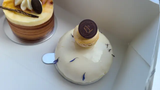 由於午餐無得食,所以要去買下午茶,去左好耐無幫襯既Paul Lafayet。Paul Lafayet既甜品大廚曾於三星米芝蓮餐廳做野,用法國材料做正宗法式甜品,名牌子當然賣相味道都唔錯,不過每件小蛋糕價錢係$60。今日一口氣揀左4款唔同款式蛋糕試試。伯爵紅茶芝士蛋糕伯爵紅茶芝士蛋糕有白色朱古力鏡面,面頭有一粒迷你白色雲呢拿味馬卡龍,外面加有少少紫色花瓣。入面係芝士慕絲配伯爵紅茶同榛子糖粉餅底。芝士慕絲一貫又香又滑,伯爵紅茶味道就唔太出。迷你馬卡龍就好麻麻,無餡,得兩個字 - 癡牙!焦糖雲呢拿蛋糕焦糖雲呢拿蛋糕明顯見到有兩層,面薄底厚,頂層係雲呢拿奶黃醬,見到焦糖面,面頭有少少忌廉,底層係海綿蛋糕配焦糖內餡。呢件餅就普通d,焦糖味道主要係個面,入面焦糖味道唔出,無特別。栗子雲呢拿蛋糕栗子雲呢拿蛋糕有淺啡色鏡面,上面有一粒迷你白色雲呢拿味馬卡龍同白色珍珠波波。入面有滑溜香濃栗子慕斯包住少少雲呢拿慕斯同榛子糖粉餅。呢件餅栗子味濃,名副其實栗子蛋糕。迷你馬卡龍都係麻麻。特濃朱古力脆餅特濃朱古力脆餅有朱古力鏡面,入面清楚見到有4層,面頭有一粒迷你朱古力馬卡龍,迷你馬卡龍都係麻麻。最鍾意呢款餅既杏仁脆底,中間有朱古力海綿蛋糕,大部分係71%巧克力奶油,我鍾意呢件餅既脆餅口感,當然層次感其他餅店做得更出色(如Island Gourmet既Mozart)。個人口味排名:伯爵紅茶芝士蛋糕 > 特濃朱古力脆餅/栗子雲呢拿蛋糕 > 焦糖雲呢拿蛋糕不過總括而言,個人覺得同樣檔次既Dalloyau/Island Gourmet比Paul Lafayet更出色。By the way,呢度貌似朱古力牌其實係紙牌。兩件餅一個盒,隨餅奉送4隻木叉。…查看更多