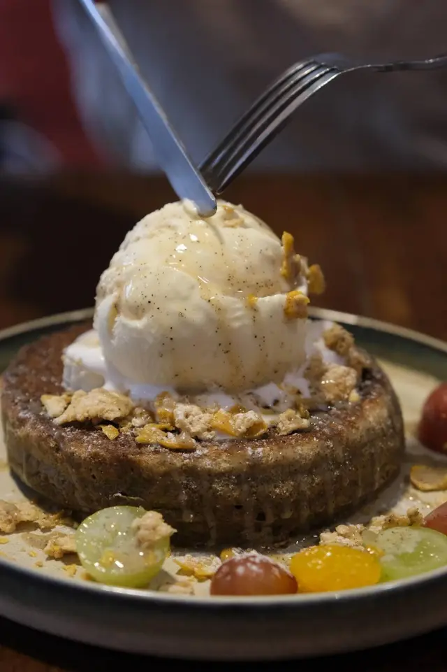 由2014年整Pancake起家嘅「蟲二 」係一間主打中日家庭料理嘅餐廳🍚 位於618上海街頂樓, 除室內位置之外, 亦設有露天花園座位用餐🏡 天台周圍種滿植物, 小小嘅藤籃鞦韆尤其搶眼✨ 環境寧靜, 好適合同朋友嚟放鬆下~ 而且商場仲有好多得意小店可以尋寶🗃️⑅ --- ・ --- ・ ---ᦏᦑ--- ・ --- ・ --- ⑅ ⑅ --- ・ --- ・ ---ᦏᦑ--- ・ --- On the table▫️一汁三菜 $150 (汁:鰹魚昆布茶高湯🎏 菜: 主菜任選一項+慢煮蛋🥚+是日副菜 - 薯仔絲🥔)*可免費添日本穀米杞子醬油坎飯+高湯*主菜我哋兩個人分別揀咗「汁燒鮭魚鰭」 & 「櫻花蝦豆乳味噌豚肉高麗菜卷」➡️三文魚鰭啱啱燒起再加埋少少燶邊咁食好香脆➡️䐁肉野菜卷賣相精緻, 健康得嚟又好食🥬 豆乳湯底幾清甜, 配上櫻花蝦令整體冇咁單調🦐 仲有年糕福袋同日式豆腐添:)⑅ --- ・ --- ・ ---ᦏᦑ--- ・ --- ・ --- ⑅ ⑅ --- ・ --- ・ ---ᦏᦑ--- ・ --- 飲品從咖啡,mocktail到cocktail亦有好多選擇🍹 Menu以文字同圖畫好有心思咁介紹不同種類嘅特色, 等客人可以慢慢挑選▫️櫻花忌廉草莓泡泡啤🌸 $65飲落似輕盈嘅草莓乳酪,同帶鹹味嘅海鹽泡沫好夾🍓底下係由櫻花漬沖泡而成嘅醬💕◽️菠椰菠蘿mint🍍🥥🌿 $65好夏日嘅組合☀️椰青水同椰奶比例啱啱好, 加咗奶後口感更順滑🌴⑅ --- ・ --- ・ ---ᦏᦑ--- ・ --- ・ --- ⑅ ⑅ --- ・ --- ・ ---ᦏᦑ--- ・ --- 甜品🥞◽️伯爵茶麻糬傳統班戟 $108▫️酒鬼朱古力麻糬傳統班戟 $118兩款Pancake 醬都幾出色~ ➡️伯爵茶嘅煎茶味頗香濃, 值得一試🫖➡️酒香味有驚喜!醬汁係成個pancake嘅精髓💫 落咗whiskey 同balieys 🍷朱古力味濃得嚟又有酒味, 唔係齋甜嗰隻, 幾特別🤤 Pancake偏實, 口感有啲似Brownie🍫⑅ --- ・ --- ・ ---ᦏᦑ--- ・ --- ・ --- ⑅ ⑅ --- ・ --- ・ ---ᦏᦑ--- ・ --- 📍蟲二Poach旺角上海街618號頂樓…查看更多