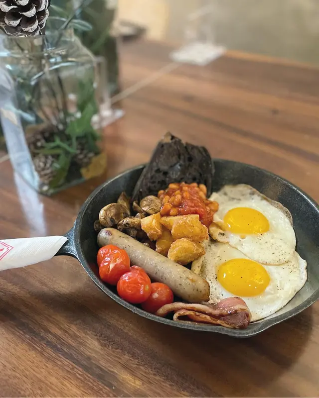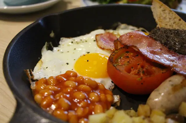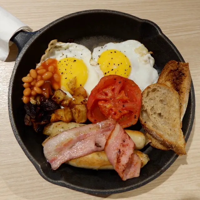 講起九龍城,大家都會諗到泰國菜,但呢區近年都開咗好多cafe,無論裝修定食物都非常高質!好似大和堂咁,門口牌匾十分搶眼,前身係一間醫館同中藥材行,經活化後變成特色cafe。呢間cafe好受歡迎,而且只得walk-in,經常都有排隊人龍。今次早少少去到,好彩唔洗排太耐😆 Cafe保留咗以前醫館嘅金漆招牌、百子櫃、牌匾同鐵閘等,而且欣賞佢樓底高,空間感十足👍🏻 傳統英式早餐作為all day控又點可以錯過呢!炒蛋好大份,而且加入糖醬,甜甜哋幾特別。小蕃茄經過醃製,撈埋茄汁豆,令茄汁豆變得好食😂麵包係用酸種包,唔錯。反而薯餅就冇乜薯仔味,失色咗啲🥲 肉醬意粉🍝肉醬份量多,可以裹住意粉。流心蛋嘅蛋黃加強意粉嘅香味。 雞蛋仔與雞🐓大和堂嘅招牌菜😋西檸醬炸雞配雞蛋仔,一上菜都幾大嘅視覺震撼😂西檸醬酸酸甜甜勁開胃,降低炸雞嘅油膩感。略嫌唔夠醬汁,令炸雞同雞蛋仔都比較乾,有啲可惜。 皇牌氣血茶🫖有桂圓、紅棗、千日紅、康仙花、金盞菊、黑枸杞。都係補血氣嘅中藥同花,味道甘香,有淡淡嘅花香味。…Read More