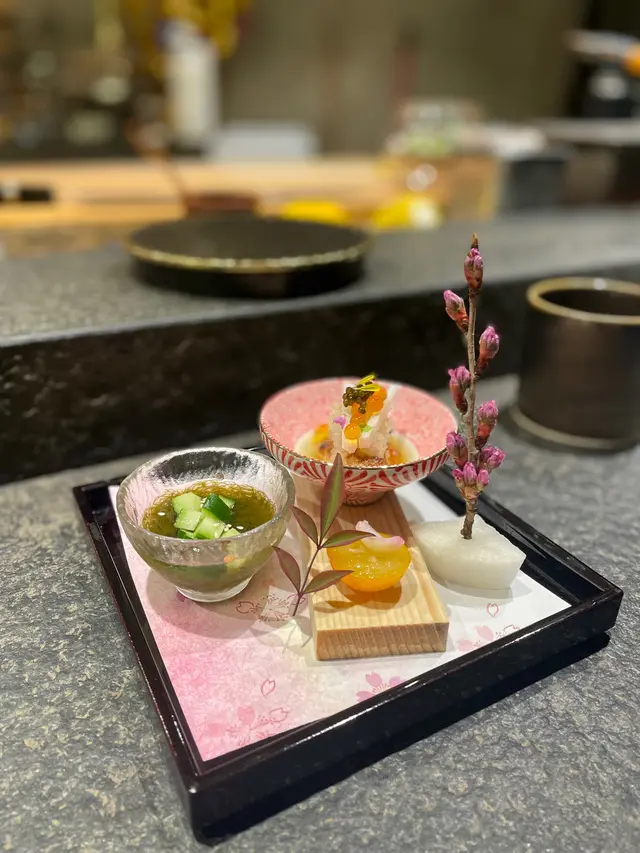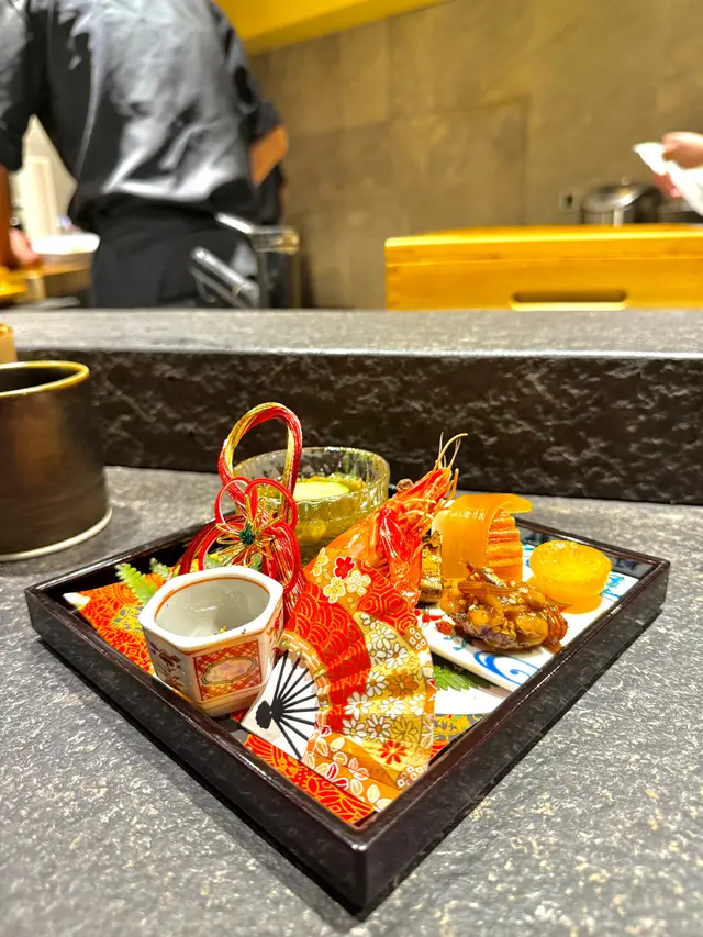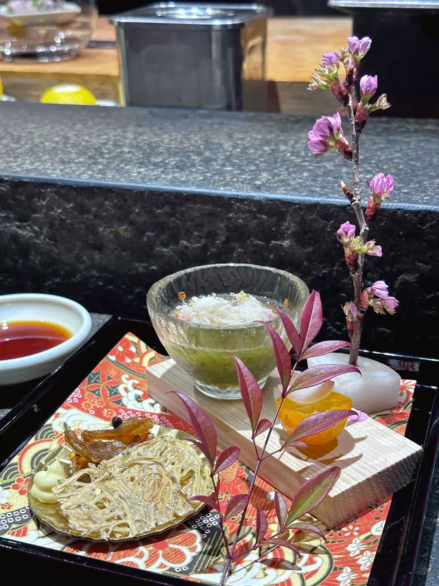 已經二訪花晨月夕,門口有種低調神秘感覺,吧枱可以坐10人, 另設有2間包廂位置,今日客人比較多,第一次坐房,要除鞋內進,雖然係包廂,但服務員都會根據我地進食速度而上菜。師傅挑選當季食材用心製作,正值新春盤擺充滿節日色彩, 靚得黎又好食,性比價高。最難以忘懷嘅係海膽,一大板好甜好creamy~☀️Omakase Sun $1380☀️➳先付♡新春前菜三味, 好精緻,一黎就眼前一亮蜜餞黑豆上面有金箔松葉蟹水滑寒天梅造型好似麵條柑橘三文魚子小女魚乾栗子➳ 刺身五款白身薄切配鮫碟魚魚邊油脂重入口即溶昆布森蠔清新爽口螢光魷魚燒得好香好靚➳ 御料理A4和牛葛粉絲和牛油脂好香➳ 壽司9款伊佐木帆立貝深海池魚地金目雕銀鱈魚拖羅赤身中拖羅海膽超正,好大版海膽,仲要超甜➳ 吸物蛤蜊清湯➳ 甜品提子果凍&赤肉蜜瓜…查看更多