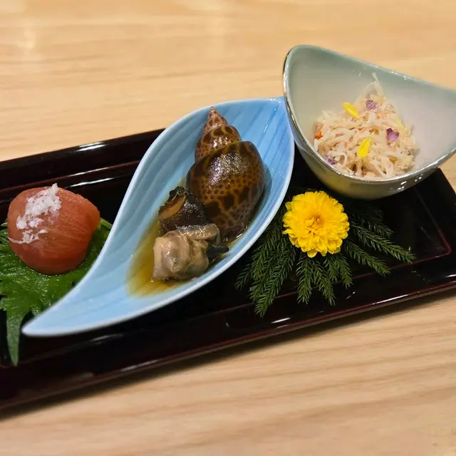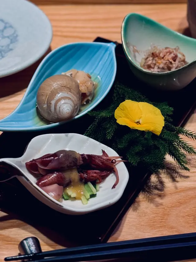 好朋友生日特登揀左Omakase慶祝生日,餐廳用上時令食材,主要食材來自北海道、九州和沖繩等等,仲可以自選壽司,一個人都可以好享受。💚先付💚甘筍蓮藕:蓮藕爽脆,甘筍甜味自然。明太子伴片:伴片口感好似魚蛋,入口煙韌,加上明太子鹹香味,味道獨特。日本鵝肝慕絲米子:鵝肝細膩滑順,米子脆口。💙刺身三種💙北海道九鰈魚:肉質柔軟,包住炙燒魚邊,加入蔥、辣椒和蘿蔔蓉調味。北海道真蠔:真蠔口感奶油般滑嫩,搭配沖繩水雲,加入了柚子酸汁和青檸汁,清爽而細膩。岩手縣石𢬎貝:脆口彈牙,帶鮮甜味,加上豉油青檸汁食。日本蠑螺切左一粒粒,肉質紮實,口感鮮爽,充滿鮮甜味。💜刺身二種💜北海道花咲蟹:蟹肉味道鮮甜,醬汁用左蟹膏整,為蟹肉增添多重口感。沙丁魚:切至細細粒,魚肉滑嫩細緻,用萬能葱、薑花、芝麻和八京蔥調味,香氣濃郁,提升鮮味。🩷燒物🩷鹿兒島A4和牛薄燒:和牛帶有微微焦香,保持油脂,入口即化,濃厚 XO醬跟和牛好夾。💛刺身二種💛北海道鹽水海膽配北海道牡丹蝦:海膽口感好似奶油咁香滑,牡丹蝦肉質鮮甜,蝦膏味道濃郁。拖羅手卷:集合大拖羅、中拖羅、赤身三個層次,赤身的鮮,拖羅的滑,油脂與魚肉細膩感,加左紫蘇葉、八京蔥,口感層次豐富。🩵燒物🩵北海道喜之次:日本深海魚,魚皮燒至焦香,魚身柔軟,魚脂四溢,加少少青檸汁食。🍚北海道產蝦夷鮑土鍋飯鮑魚鮮味濃郁,米飯吸收高湯的香氣。🍮抹茶奶凍抹茶香濃,配搭甜滑奶凍,口感輕柔又細膩。…查看更多