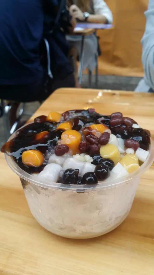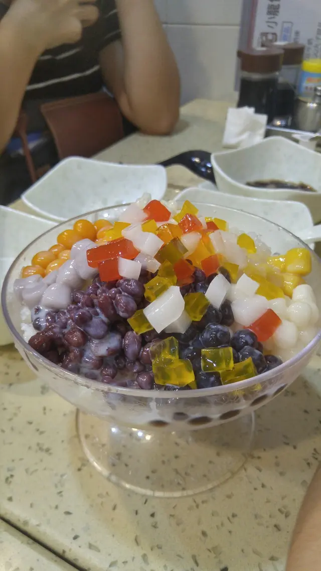 同朋友share一個八寶冰($25)真係超抵食!首先超足料,有八種材料:芋圓,地瓜圓,紅豆,珍珠等等全部份量十足,無偷工減料。絕對建議兩個食,一個人真係食唔曬。。。芋圓,地瓜圓超有口感,芋頭/地瓜味十足其他材料正正常常。下面d冰加左煉奶而且幾幼細,但主角都係上面個八種材料。D服務都唔錯,雖然我地兩個人淨係食左25$,但個server都幾有禮貌,無歧視我地。真心覺得$25有咁嘅質素真係物超所值。。。…查看更多