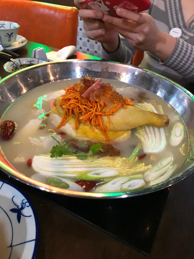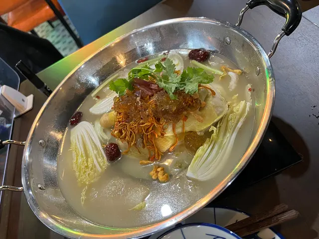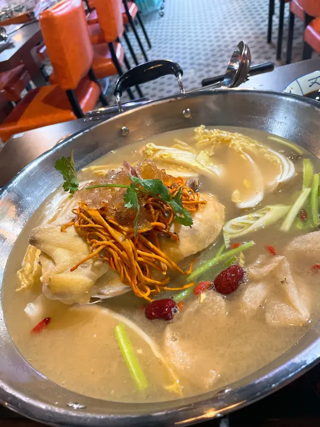 今晚同班朋友一齊食團年飯😆除咗有多款火鍋配料 亦有很多特色小食同刺身作選擇 十分多元化加拿大象拔蚌~叫咗一份象拔蚌做刺身前食 很鮮甜爽口 份量十足餐廳主打特色火鍋 例如招牌的冬甫美人湯、胡椒豬肚少爺雞湯等 呢個十分足料嘅冬甫美人湯底 用咗新鮮原隻雞加埋有大量的配料,例如冬瓜、竹笙、桃膠等 煮出嚟嘅湯底飲落非常之清甜 雞件都十分嫩滑 打邊爐梗係唔少得肥牛 呢碟係手切肥牛牛味特別濃郁 油花豐富 最啱就係用嚟打邊爐四寶餃其中一款喺芋頭臘腸豬肉餃 皮薄餡特別田雞好新鮮 上菜嘅時候田雞腿都仲郁緊 煮熟咗嘅雞髀肉好彈牙蜂巢豆腐 好大件 索曬啲雞湯 同出面邊爐嘅豆腐好唔同 最後仲送上甜品懷舊啫喱同糖不甩 仲要煮一煮 加上花生粹食 好特別嘅甜品…查看更多