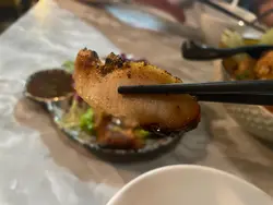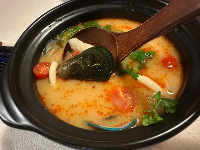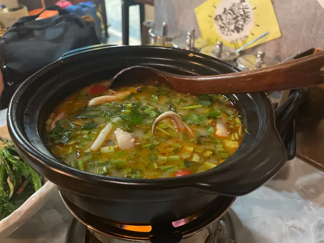 🐷 泰式炭燒豬頸肉😎 首先試咗泰式炭燒豬頸肉,燒得金黃,炭燒香氣好吸引!🔥 豬頸肉外焦內嫩,肉質juicy,配上泰式甜辣醬汁,甜酸微辣好夾,咬落滿口煙燻香!😍 呢道菜真是一個惹味嘅開胃之選!🥬 泰式炒雜菜(小辣)跟住有泰式炒雜菜小辣,熱辣辣上枱,香料味好突出!🌶️ 雜菜主要有芥蘭同椰菜,新鮮脆口,芥蘭綠油油,椰菜爽脆,炒得啱啱好保持咬口。小辣度調得啱啱好,帶點泰式香料嘅刺激,醬汁均勻,食落開胃又健康!😋 🦐 冬陰功海鮮湯(小辣)湯品係冬陰功海鮮湯小辣,一碗熱辣辣,酸辣香氣撲鼻!🍲 小辣味唔會過火,湯底酸酸辣辣,入面有魷魚、蝦同青口,樣樣都10分鮮甜彈牙!🦑🦐 青口肥美,蝦肉爽口,魷魚嫩滑,海鮮份量好足,飲落滿口鮮味,仲有檸檬草同香茅嘅清新,泰國味爆棚!😜🍚 蝦醬炒飯主食試咗蝦醬炒飯,飯粒炒得粒粒分明,蝦醬香氣好濃!🦐 入面有大量臘腸同蝦米,鹹鮮味十足,食落好惹味!臘腸香脆,蝦米增添海鮮風味,炒飯唔會太油,口感乾爽,每啖都好滿足!😎 呢碟炒飯真是一個經典泰式選擇!🍢 雞胸軟骨串(配沙嗲醬,泰式辣醬)最後有雞胸軟骨串,燒得金黃香脆,配沙嗲醬同泰式辣醬!🐔 雞胸嫩滑,軟骨脆口,沙嗲醬濃郁奶香,泰式辣醬酸辣開胃,兩款醬汁交替沾,味道好有層次!😋 串燒食完真想encore多幾串!(但已飽😂😂)…查看更多