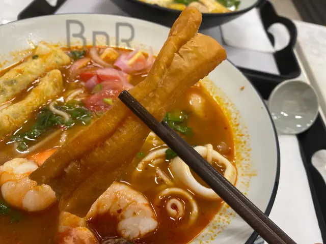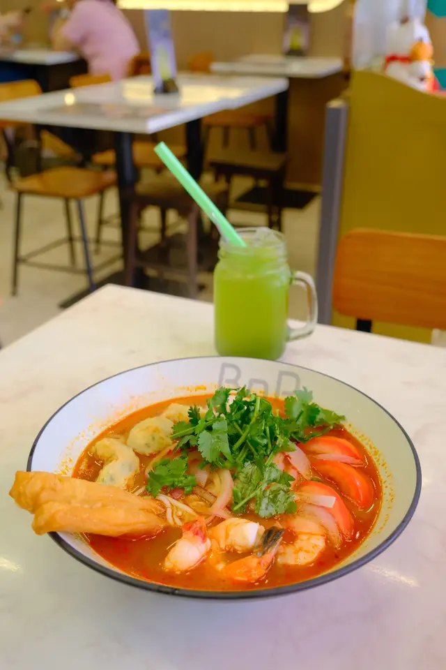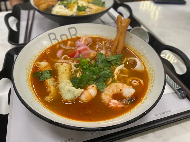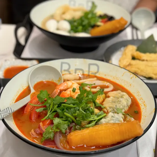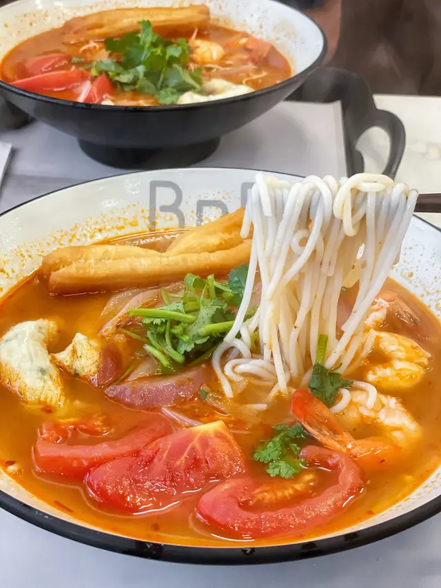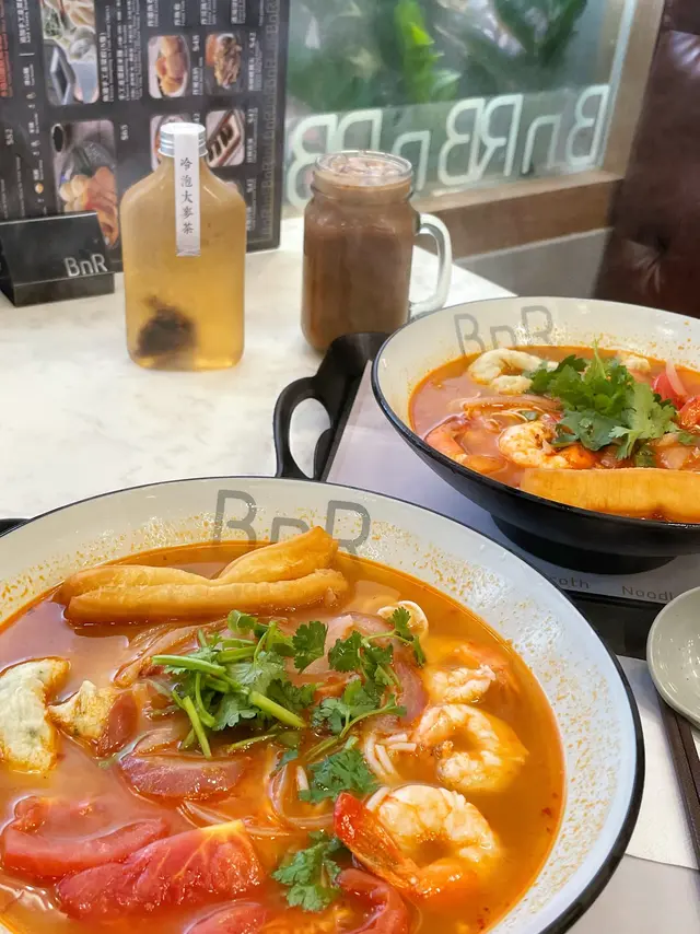 係荃灣廣場附近新開左呢間BNR,原來即係Broth Noodle Rice。主打唔同湯底既麵類同埋泡飯。重點係無味精!最後飲曬成碗湯都冇問題。而且最近天氣開始凍,啱曬食呢類湯麵。 1️⃣藥膳花膠釀魷筒淮山麵($88) 好香藥膳味,而且飲落好暖胃~好啱冬天食。仲有雲耳、玉米筍、杞子,飲落香濃唔油膩👍另外魷筒幾好食,入面係釀滿墨魚滑既。花膠都有兩片,呢個價錢幾抵食。另外好鍾意個油炸鬼,好脆身!可以浸下湯索湯食,亦可以就咁食佢脆脆既口感。 2⃣️冬陰功海鮮米線($68)(追加手工韭菜餃+$13) 冬陰功同平時泰式既唔太一樣,同泰式既酸辣有啲分別,呢度既酸比較重蕃茄味,配以辣味調味,感覺更加輕盈健康。配料有蕃茄切片,仲有蝦、魷魚圈、炸魚捲,都幾豐富。跟住仲追加左餃子,餃子比好想像中大隻,而且好多餡😋 3⃣️炸墨魚卷($42) 有四條,點埋配上既酸辣醬汁,好夾。 …查看更多