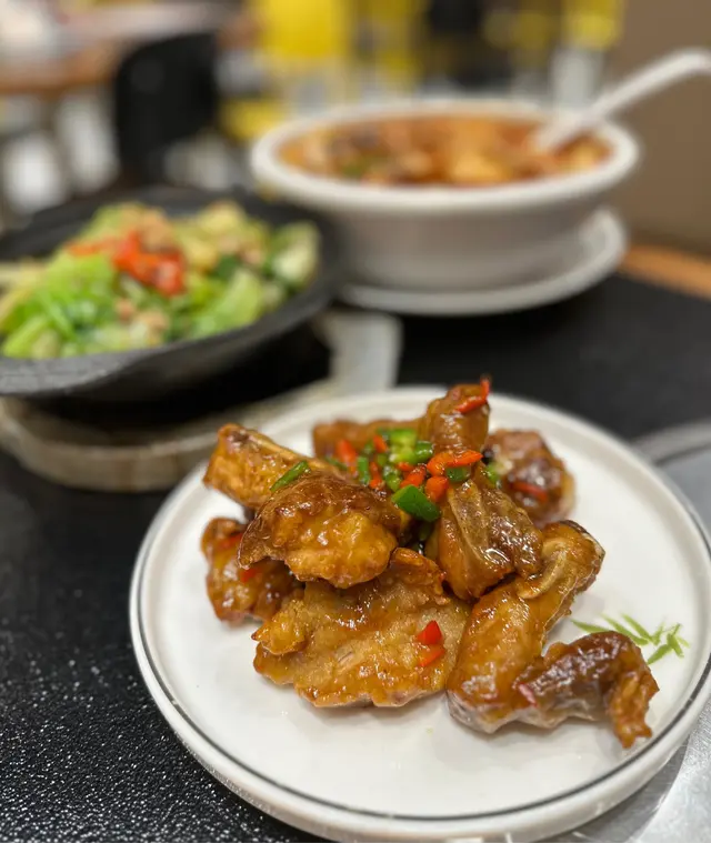 天氣涼返啲就想食啲鑊氣小炒 見到老友記廚房主打特色中菜 咁就岩曬✌🏼🌶四川水煮魚 $148叫左小辣 辣度岩岩好 事關我地都吾食得太辣 中意辣啲既朋友 可以再加碼除左辣味 麻香都幾濃烈 川菜既靈魂👍🏻鯇魚塊薄切 肉質依然嫩滑 愈食愈入口 辣得過引 魚皮爽脆入面仲有豆卜 芽菜 薯粉豆卜最索湯汁 冇得輸薯粉寛身又腍 好食🍲啫啫生菜煲 $88熱辣辣 落左蝦米 加埋蝦醬 鹹鹹香香好惹味🤤生菜爽口 又有肉碎點綴下 吾會太齋🍖冰梅金沙骨 $98呢個系佢地既招牌菜🏅蜜汁微甜 而冰梅粉酸酸地 幾醒胃 送飯一流份量都多 啖啖肉💭除左小炒 餐廳仲有吾同種類既海鮮食 連龍蝦都有 而且小菜又夠鑊氣 環境又比大排檔好得多😊…查看更多