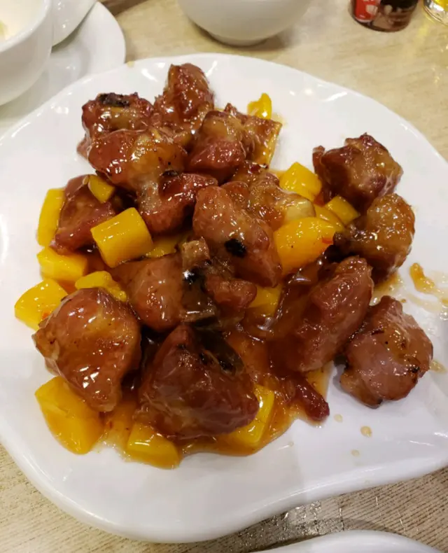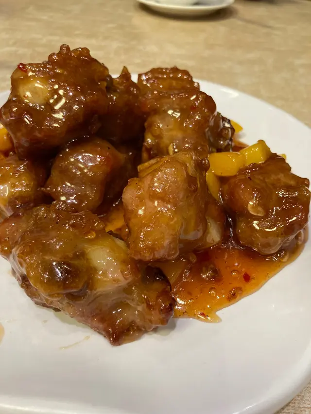 餐廳在恒景商場地下,一進商場左面直行便到。朋友說這裡經常排長龍,十分旺的!難得假期晚上8:30pm,無人排隊。一行2人坐一張圓枱,叫了3個餸。每個餸價錢約100元,但份量足,味道好,所以貴得有道理!大力推薦冰梅骨!炸得很香口,配搭有桃肉的甜酸醬汁,很開胃!黃金魷魚,炸得很脆,魷魚大件和厚肉。啫啫芥蘭煲,內裡有豬頸肉和蝦乾,味道很香口。…查看更多