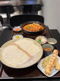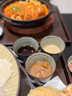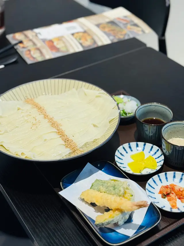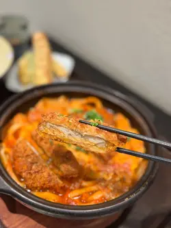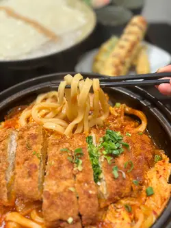 最近幾日天氣突然間又凍左,即刻想食番啲熱辣辣既野,黎到啟德呢間大熱既韓國過江龍烏冬專門店,除左佢地最招牌既闊條烏冬之外,原來仲有一系列鍋燒烏冬,原鍋熱湯配上自家製煙韌烏冬,絕對係冬天之選﹗1️⃣酥脆吉列豬扒泡菜鍋烏冬($138)吉列豬扒大大件非常厚切,原鍋上已經見到湯底係幾咁滾燙,湯底就係經典既韓式泡菜鍋,香辣惹味,仲有啲蛋碎係湯到。手打烏冬煙韌彈牙,配埋個香濃湯底冬天食真係一流。2️⃣冰鎮寬條烏冬套餐($128)(竹輪天婦羅+$5)呢款之前見好多人推薦,仲要每日限量供應,想食到都要睇運氣。一條條闊條烏冬平鋪係冰面上,口感爽滑彈牙,食落有咬口。仲配上左三款沾醬,有鏗魚汁、胡麻醬同埋咖喱醬。想食得清爽啲定係濃郁都有得揀。特別鐘意配胡麻醬,同冷麵真係絕配。另外套餐仲有跟個天婦羅,揀左竹輪天婦羅,第一次食咁大個既竹輪天婦羅,另外佢仲有啲蔬菜天婦羅,有茄子、冬菇、南瓜仲有青椒,種類都多同埋豐富。…查看更多