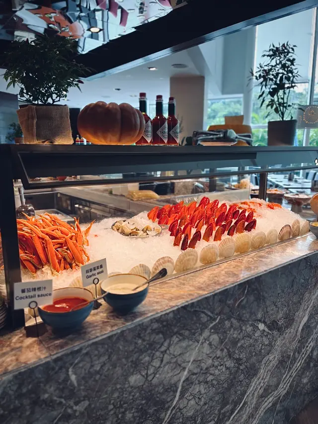 最近不少酒店自助餐都有特價優惠,今次就發掘到香港沙田凱悅酒店官方網店有自助午餐半價優惠。平日星期一至五5折後連加一成人每位只需$282,於下午12:00-14:30供應,可以不追不趕地食足2.5小時。餐廳樓底夠高,環境極盡開揚寬敞,甚有空間感,落地大玻璃將日光引進室內,採光充沛。冰鎮海鮮源源不絕地供應,refill 速度亦夠快,款式包括龍蝦鉗、蟹腳、蜆和凍蝦。值得一讚的是龍蝦鉗早已被敲碎,無需動用剪刀都可將蝦肉完整取出。即切肉類有兩款,包括即切燒牛肉和烤雞。西式熱盤包括燴海鮮、法式燉肉煲、意式炸蝦、烤三文魚柳、蕃茄羅勒長通粉、蕃茄薄餅、焗薯仔、烤雜菜和雜菜湯。烤肉區有烤羊架、烤雞鎚、黑椒豬肉腸、紐倫堡腸和燒菠蘿,即叫即燒,燒菠蘿蒸發了生果中的水分,令酸甜天然果香更加突出。開放式廚房提供多款中式熱葷,例如紅棗杞子炒蝦仁、剁椒蒸龍脷柳、薑蔥鴨、薑汁炒芥蘭、紅咖哩雜菜、叉燒炒飯、韮菜餃、燒賣、蝦片等。燒味檔集齊蜜汁叉燒、白切雞、明爐燒鴨和紅腸,還有粉葛赤小豆煲赤肉、話梅炆豬手和即煮粉麵檔。另有多款魚生刺身和壽司卷物。凍肉有巴馬火腿、火腿和意大利莎樂美腸。芝士拼盤放滿金文畢芝士、瑞士芝士和水牛芝士。沙律吧有多款已經拌好的沙律:海鮮沙律、煙三文魚沙律、希臘沙律、吞拿魚沙律、蕃茄沙律、扒雜菜沙律、凱撒沙律等等。另有多款新鮮沙律菜、調味醬汁及配料,可隨個人喜好自行混搭。甜品區有海量款式:野莓朱古力慕絲蛋糕、芒果慕絲蛋糕、香檳白桃慕絲蛋糕、朱古力脆米蛋糕、白朱古力雲呢拿慕絲草莓蛋糕、黑朱古力脆餅、意式奶凍、綠茶紅豆卷、忌廉泡芙、焗菠蘿焦糖牛油蛋糕、麵包布丁、雞蛋仔、葡撻、時令新鮮水果和糖果......其中一大特色可算是賣相精緻的原個蛋糕,同時滿足視覺、味覺享受。亦有一口一件的迷你size,可以盡情淺嚐多個款式。即製甜品有班戟,Crêpe質地厚薄適中,口感柔韌,內含天然完熟香蕉果肉作內餡,還可添加雪糕和各款配料,微熱的餅底與冰凍的雪糕,一熱一冷,衝擊味蕾。最後不要忘了任食雪糕,這裡供應足足有八款口味之多。Affogato雪糕咖啡亦是酒店自助餐中較為罕見,集甜點和飲品於一身,將Espresso淋上自選口味的雪糕球,咖啡的微苦含酸,與雪糕的香甜相融合。訂位時表明慶祝生日,就會送上隱藏款式生日蛋糕,點上蠟燭,讓節日添上滿滿儀式感。飲品有咖啡機無限供應,可以隨時自斟自飲。…查看更多