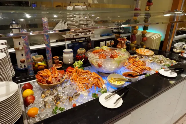 移民外地多年的朋友回港旅遊數天,入住天后的維景酒店,當然要約出來聚一聚啦;最方便定必是酒店內的餐廳了;自助餐老少咸宜,就算待久了一點,朋友的兩個寶貝兒子也不至於太無聊吧!由酒店的正門,經扶手電梯上一樓,再經圓型樓梯到二樓,就會來到繽紛維苑餐廳。吃自助餐,自己通常會先巡視一圏,看看有什麼想吃的。第一輪先是主攻蔬菜類,之後才到海鮮、主菜及甜品。菜蔬的選擇也不少,首先看到的便是我的至愛火箭菜,再來還有車厘茄、粟米、薯仔、青黃椒、秋葵、鷹咀豆和紅腰豆等可供選擇;隨個人喜好選擇醬汁 - 千島醬、法式沙律醬或日式沙律醬,不過還是陳醋及橄欖油最得我心,好味又健康!時值大閘蟹季節,沒有不吃的理由罷!這江蘇大閘蟹的蟹糕也真不少,如不是要保留後勁,一定要掃番三、四隻才會罷休。凍海鮮區也有不少選擇,龍蝦、翡翠螺、長腳蟹、大蝦、青口等,看真點,連大閘蟹也來個冰鎭?還是揀我最喜歡的龍蝦吧,雖然size不是很大,肉質卻是爽口彈牙,而且蝦膏也不少呢。菜胆雞和清蒸龍脷柳,雞肉嫰滑,沒什麼雞味是意料中事。蒸魚的火喉可能過了火,有些少嚡口。原來雪莉酒及port 酒是無限量供應的,喜歡飲酒的我當然要一試啦,用它來配襯黑毛豬火腿及芝士,更是適合;芝士有很多種不同的味道,例如有:Herbes Cheese,Port Salut,Edam Cheese,Walnuts Cheese,Blue Cheese,Emmental Cheese和Le Camembert Cheese,喜歡芝士的人,一定會像我一樣,吃個不停。😋酥炸墨魚餅外層炸得酥脆,肉質彈牙,但卻欠缺墨魚味。野菌忌廉湯 ~ 其中一樣我最喜歡的湯品,雖然明知道會好飽肚,也忍不住吃了大半碗。😅刺身有三文魚、八爪魚、赤貝、甜蝦和醃帶子,每樣也各吃了少許。還可以Order鵝軒、燒蝦、羊架和燒蠔,當然要試試了;鵝軒外脆內軟,上面的士多啤梨有助降低油膩感;燒大蝦的時間掌握得剛剛好,亦很鮮味;羊架大大件,肉質鮮嫩不會太膻;燒蠔則比較乾身,肉質有點兒韌。終於到我至愛的甜品時間(第二個胃開動),花多眼亂,選擇困難症又發作了,最後選擇每樣一件,一於盡情放縱一下。軟芝士蛋糕、意大利芝士餅、美國芝士餅、燕窩葡撻、鮮果班戟、牛油乾果蛋糕、伯爵茶芝士蛋糕、芒果拿破崙、馬卡龍、朱古力蛋糕、迷你鮮果撻、士多啤梨蛋糕、木糠布甸、涼粉丶椰汁黑糯米布甸;還有一些懷舊的糖果、如牛奶糖、可樂糖、山楂餅、朱古力豆、陳皮梅及珍寶珠、白果腐竹糖水和Haagen-Dazs 雪糕。最後食生果(士多啤梨、哈蜜瓜、西瓜、菠蘿)平衡一下甜膩的感覺。飲品有薑茶、咖啡、熱朱古力、橙汁、蘋果汁和西柚汁,食了這麼多大閘蟹,當然要飲番杯熱辣辣的薑茶來驅一驅寒。原來加$88 便可任飲多款紅白酒,可惜朋友不好杯中物,只好自個兒獨酌,實在有點不能盡興,如好此道的朋友只是飲酒都值回票價了。每位只是$438 ,種類多、質素也不俗,抵食之選!…查看更多