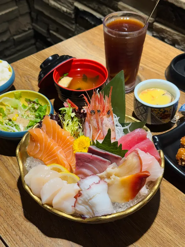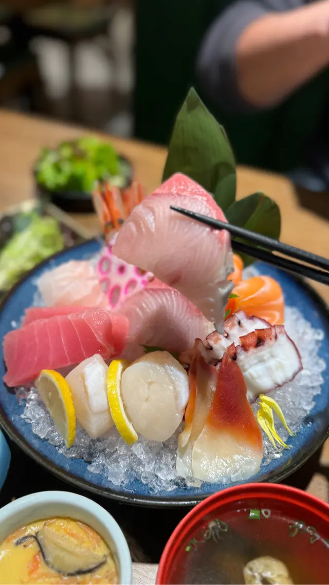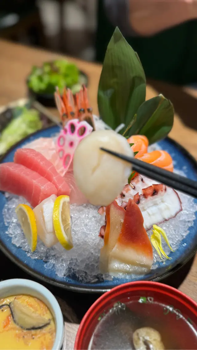 定食仲有麵豉湯、茶碗蒸、沙律😍其中怪獸真係改錯名,三文魚真係超超超肥美! 又厚又大又油脂重,諗起都想再食!🍣 刺身定食 - W01刺身有三文魚2件、吞拿魚2件、八爪魚2件、甜蝦2隻、北海道帶子2件、真鯛魚2件、北寄貝2件、油甘魚2件