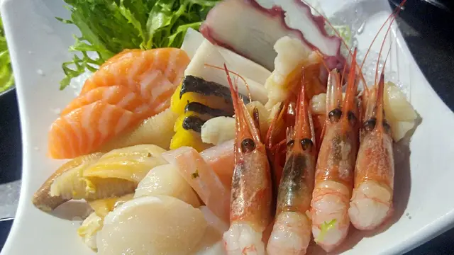 非常抵吃,但朋友不太愛好生蠔就沒加了!環境也算寬敞舒適,近門口的卡位適合吃爐端燒用。來吃放題必點刺身,因為抱病在身,胃口不佳,只好節制一點,先吃少量刺身,甜蝦和油甘魚特別新鮮好味